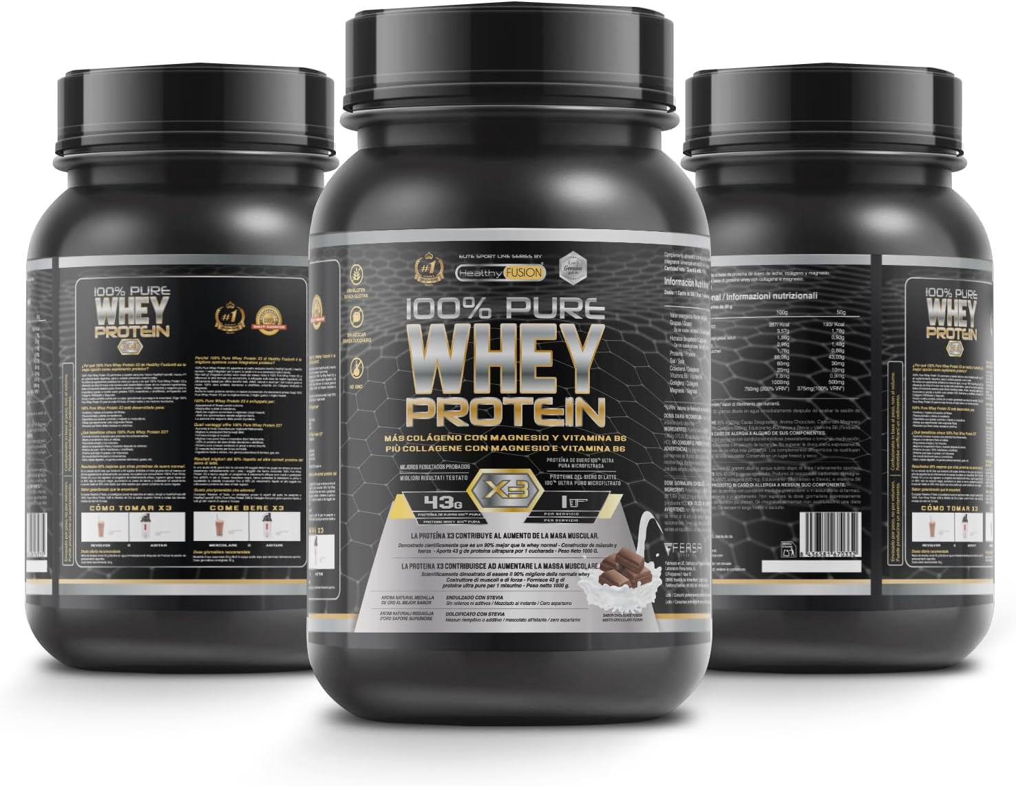 ✅ THE MOST COMPLETE AND EXCLUSIVE WHEY PROTEIN – 100% Pure Whey Protein X3 is a pioneering and innovative product containing active components of unsurpassed quality. The whey protein used in our product is unique to our laboratory, with a purity and assimilation like no other protein can offer. In addition, 100% Pure Whey Protein X3 is the only product that also contains pure collagen and assimilated magnesium, to achieve complete muscle recovery.