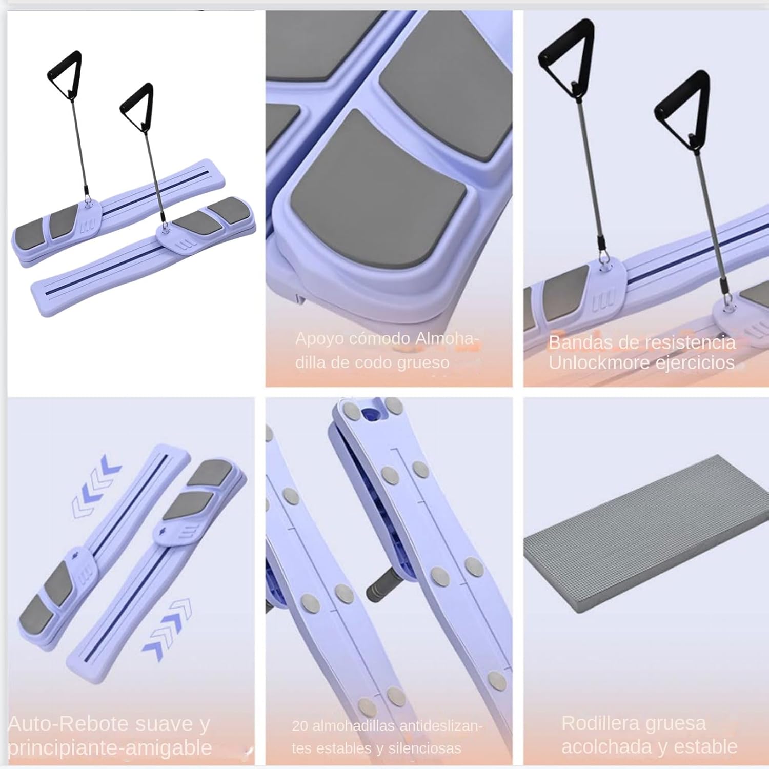 Total Body Stretch: Power abdominal strengthening through multifunctional board + uses dynamic movements and elastic bands for balanced body conditioning