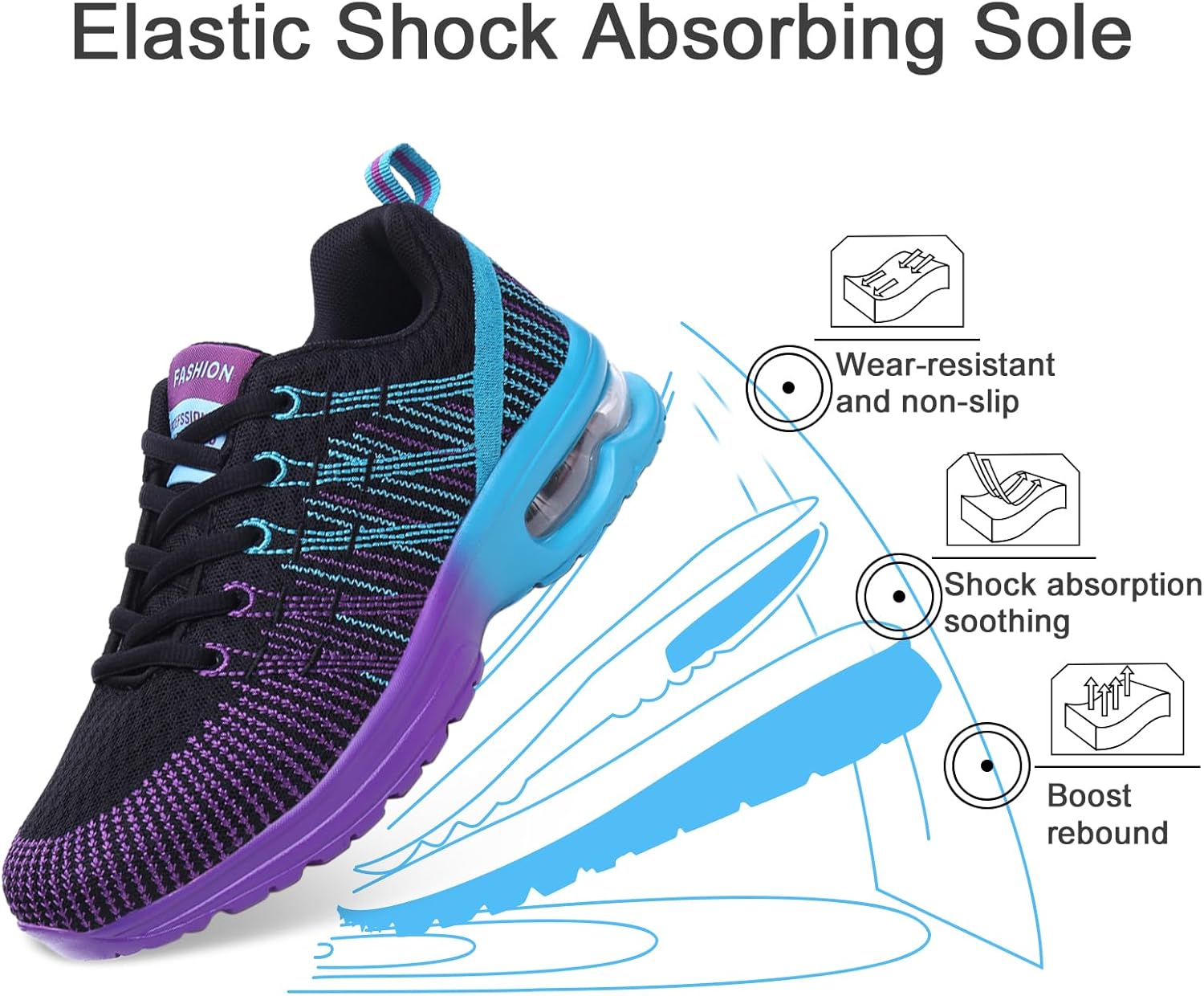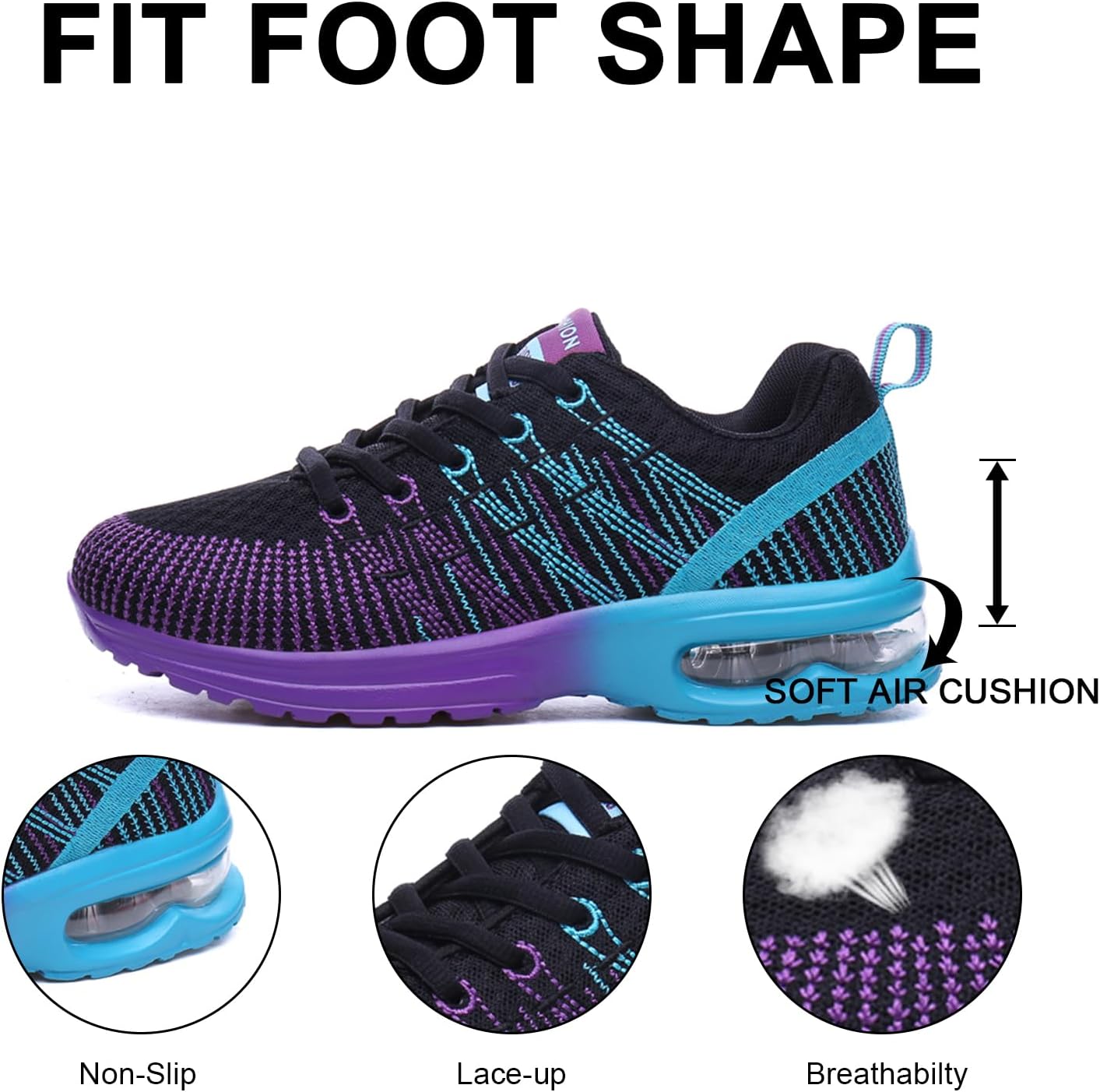 Estas zapatillas para correr para mujer cuentan con una parte superior de malla suave combinada con ventilaciones Hitmars para mantener sus pies cómodos y secos. Perfecto para correr, trotar, caminar, fitness, tenis, trabajo, una variedad de actividades interiores y exteriores, y más