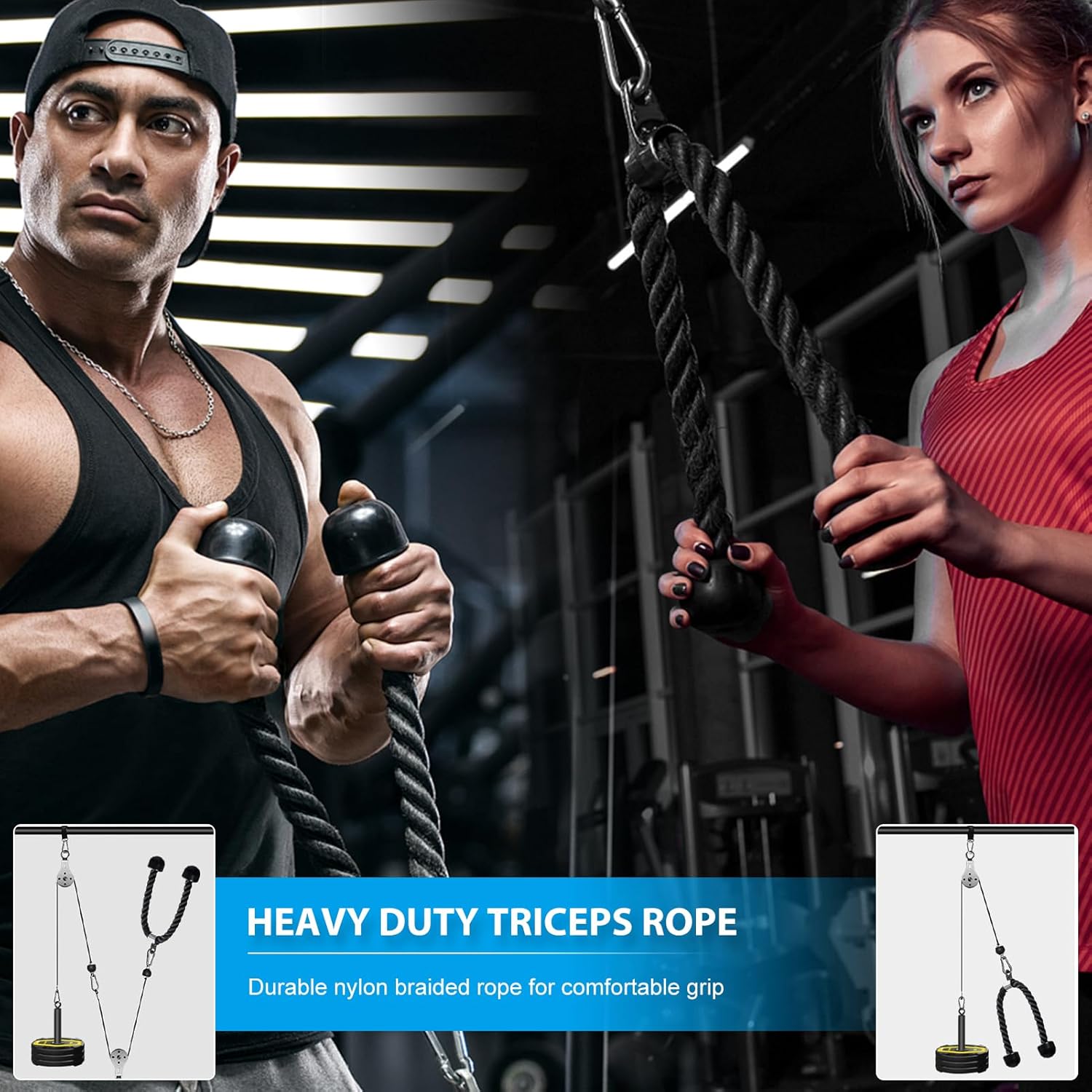 【Compatible Device】 Gym pulleys kit provides an easy, versatile way, super easy to set up, connected to the squat rack, power rack, beams and anywhere the belt can be installed. A variety of exercise options can be integrated into training, such as bicep curl, lat pulldown, rowing, fly etc.