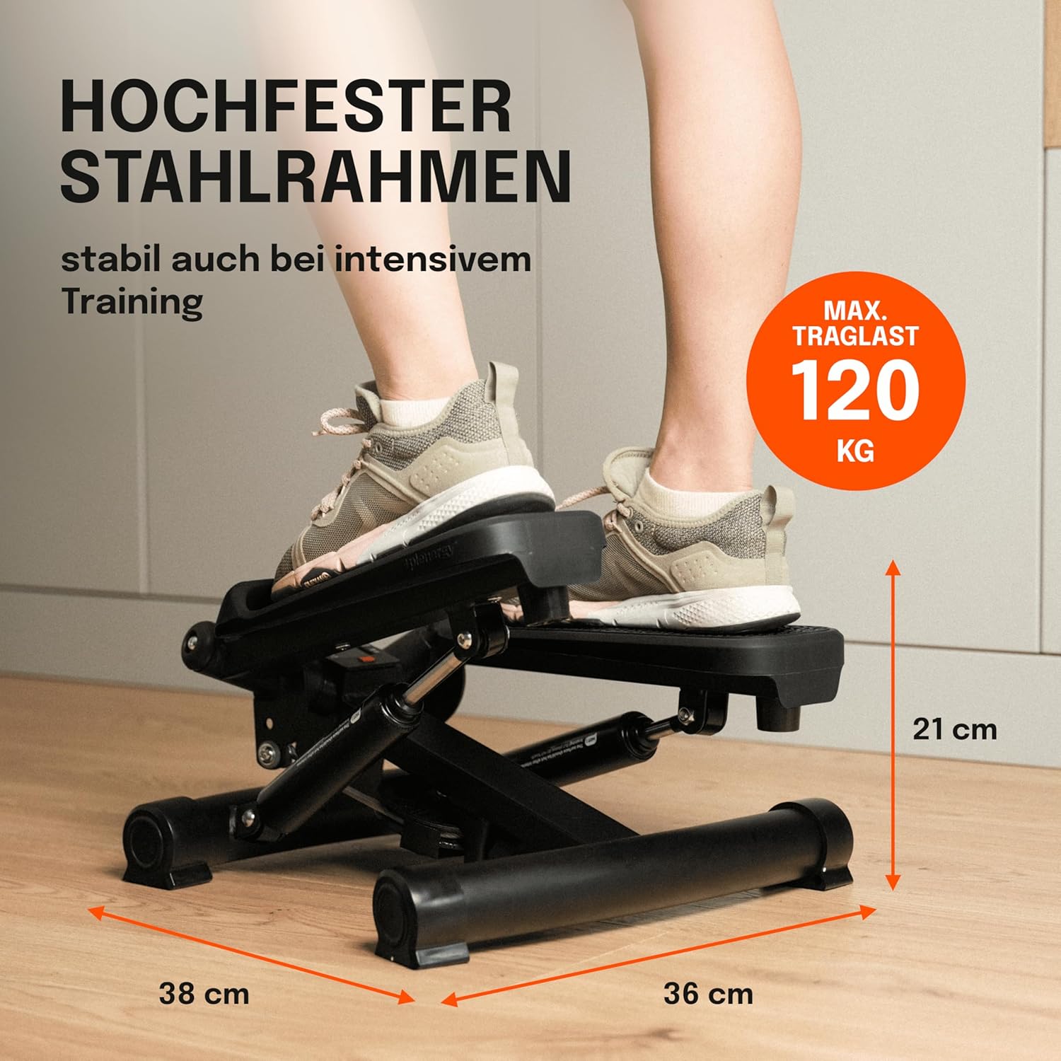 CUSTOMIZED & QUIET TRAINING – Adjust the height of the hydraulic step as desired to adjust the intensity of the workout and use the included bands for a personalized arm workout. Enjoy quiet and even movement thanks to the two hydraulic cylinders that provide reliable and quiet performance. For a maximum load of up to 120 kg