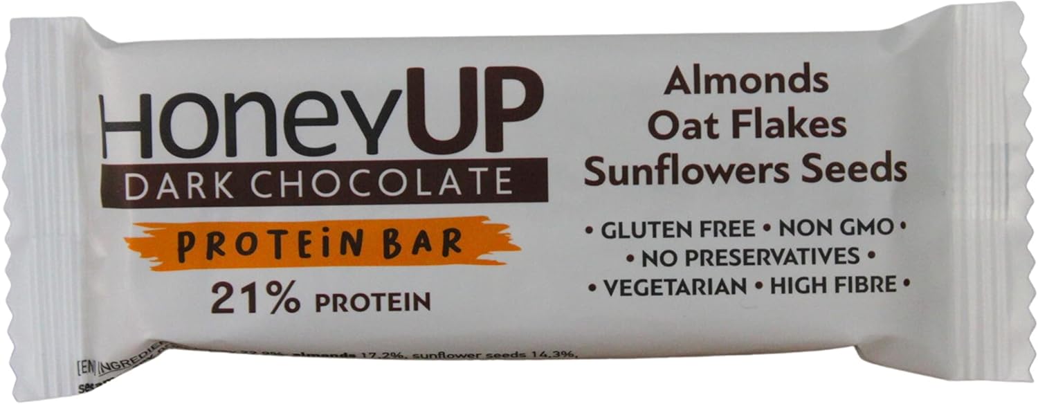 HoneyUP Dark Chocolate Almond Protein Bars, Oatmeal Flakes & Sunflower Seeds, 12 x 40g | No Added Sugars | Vegan & Gluten Free