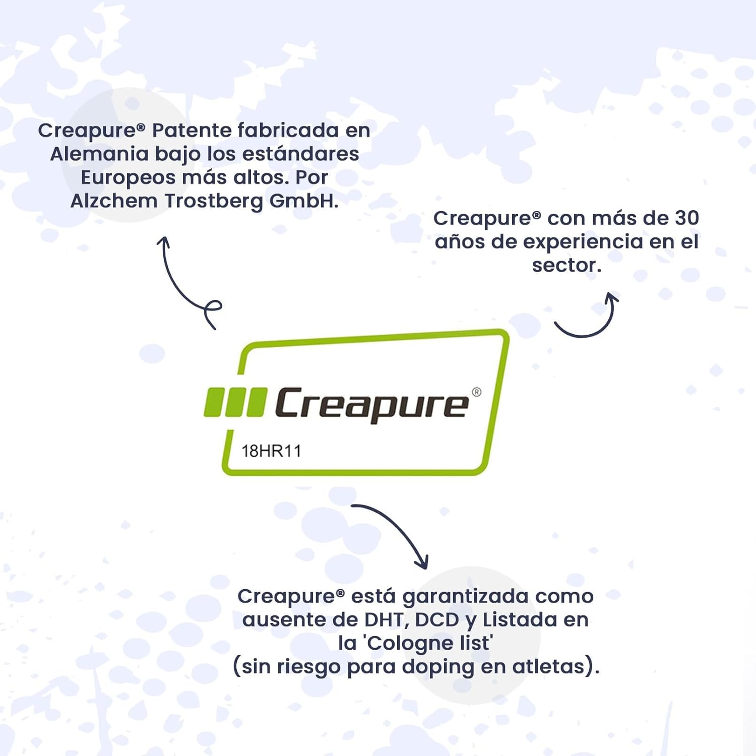 [ CREATINE MONOHYDRATE CREAPURE ] Powdered food supplement made exclusively from the internationally known raw material of Creatine Monohydrate: Creapure. Redefine your workout with a product that stands out from other brands for its exceptional quality and purity. Creapure is a patent manufactured in Germany under European standards very controlled by Alzchem. Each serving provides an optimal dose of the purest creatine and highest quality.