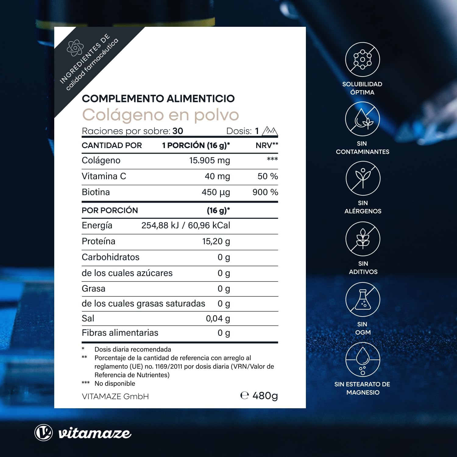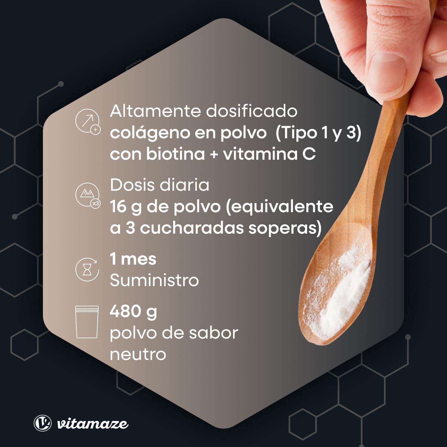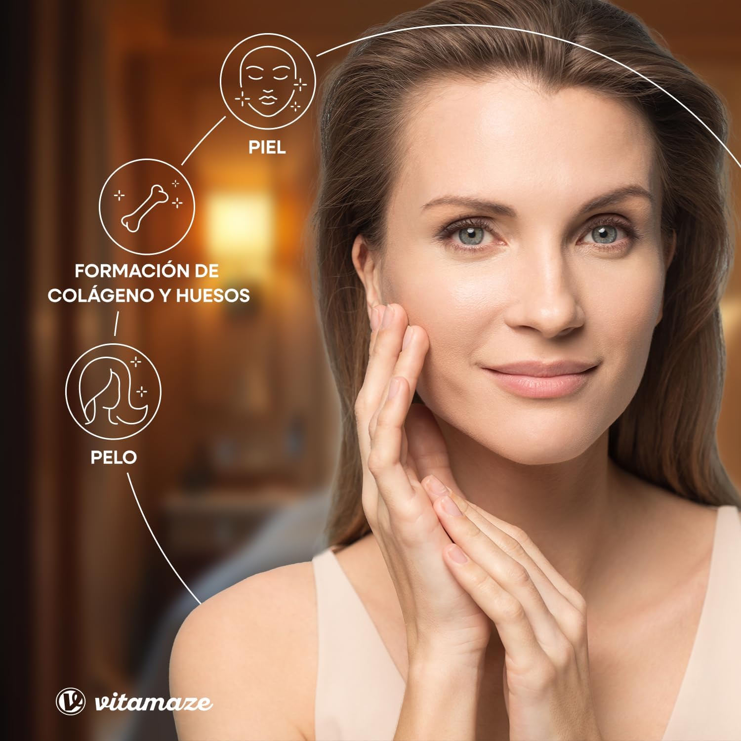 SKIN VITAMINS: Carefully developed combination of collagen, vitamin C (40 mg) and biotin (450 μg). Vitamin C contributes to the normal formation of collagen, while biotin contributes to the maintenance of skin and hair under normal conditions.