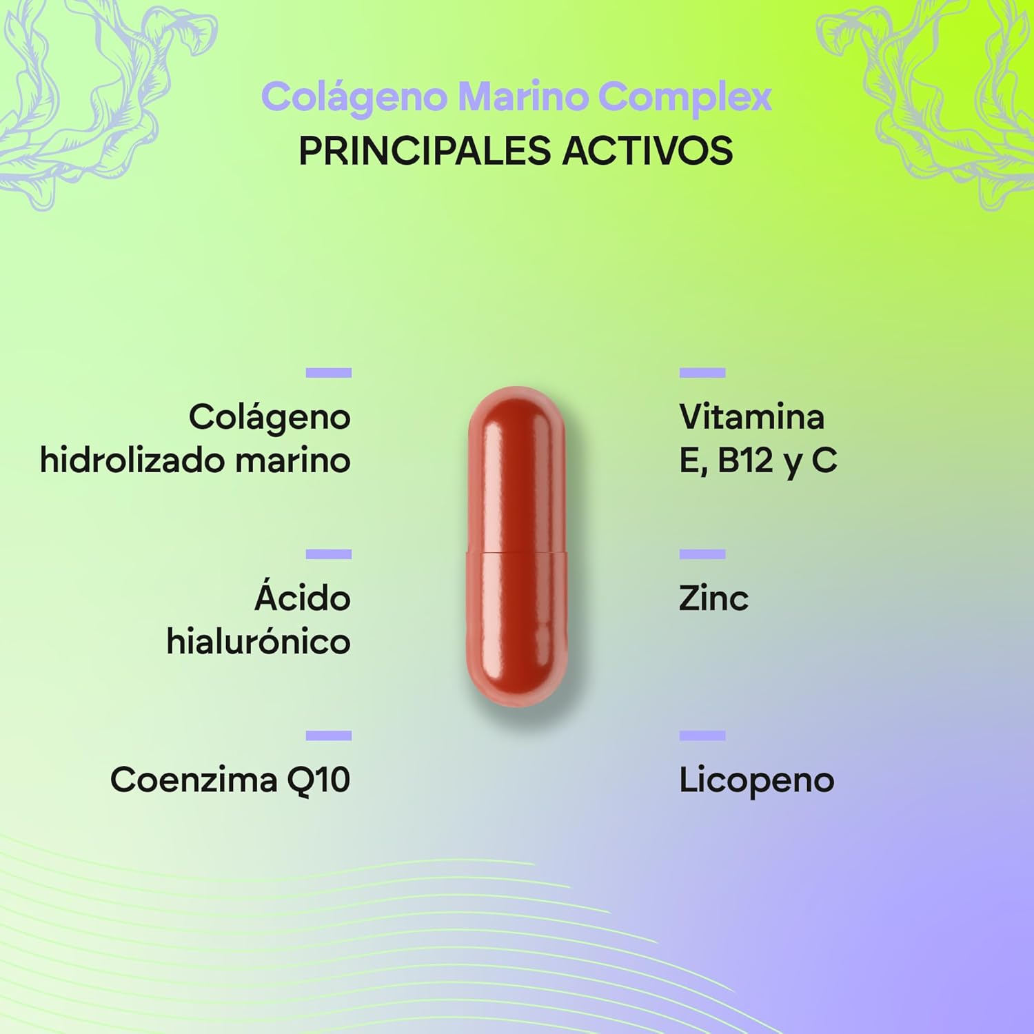️8 ACTIVES: Marine Collagen Complex in addition to containing Marine Hydrolyzed Collagen, Hyaluronic Acid and Coenzyme Q10 also includes Lycopene, Vitamin B12, Vitamin C, Vitamin E and Zinc. Vitamin C contributes to the normal formation of collagen for normal skin functioning and zinc contributes to the protection of cells against oxidative damage. Statements supported by EFSA (European Food Safety Authority).