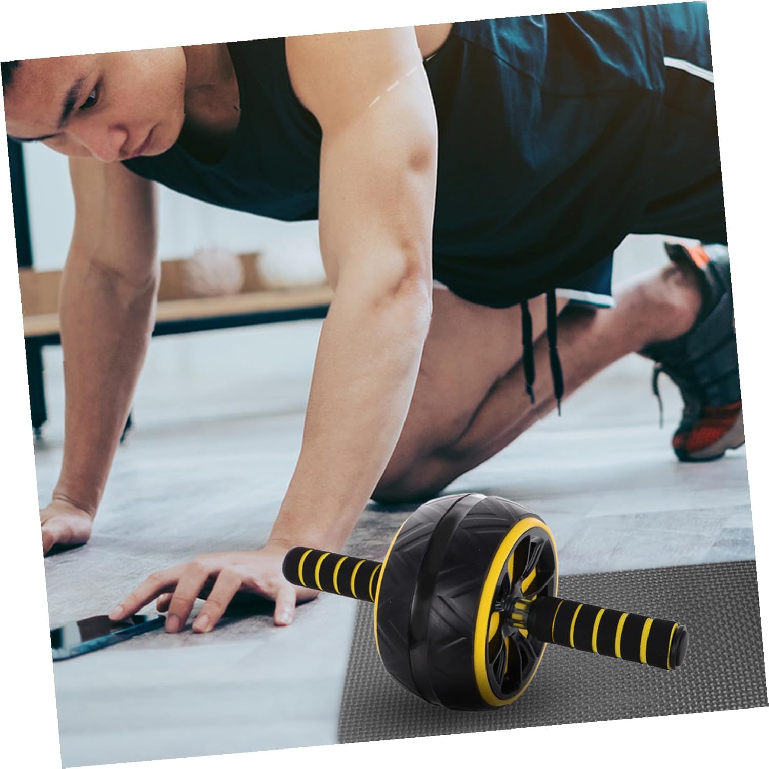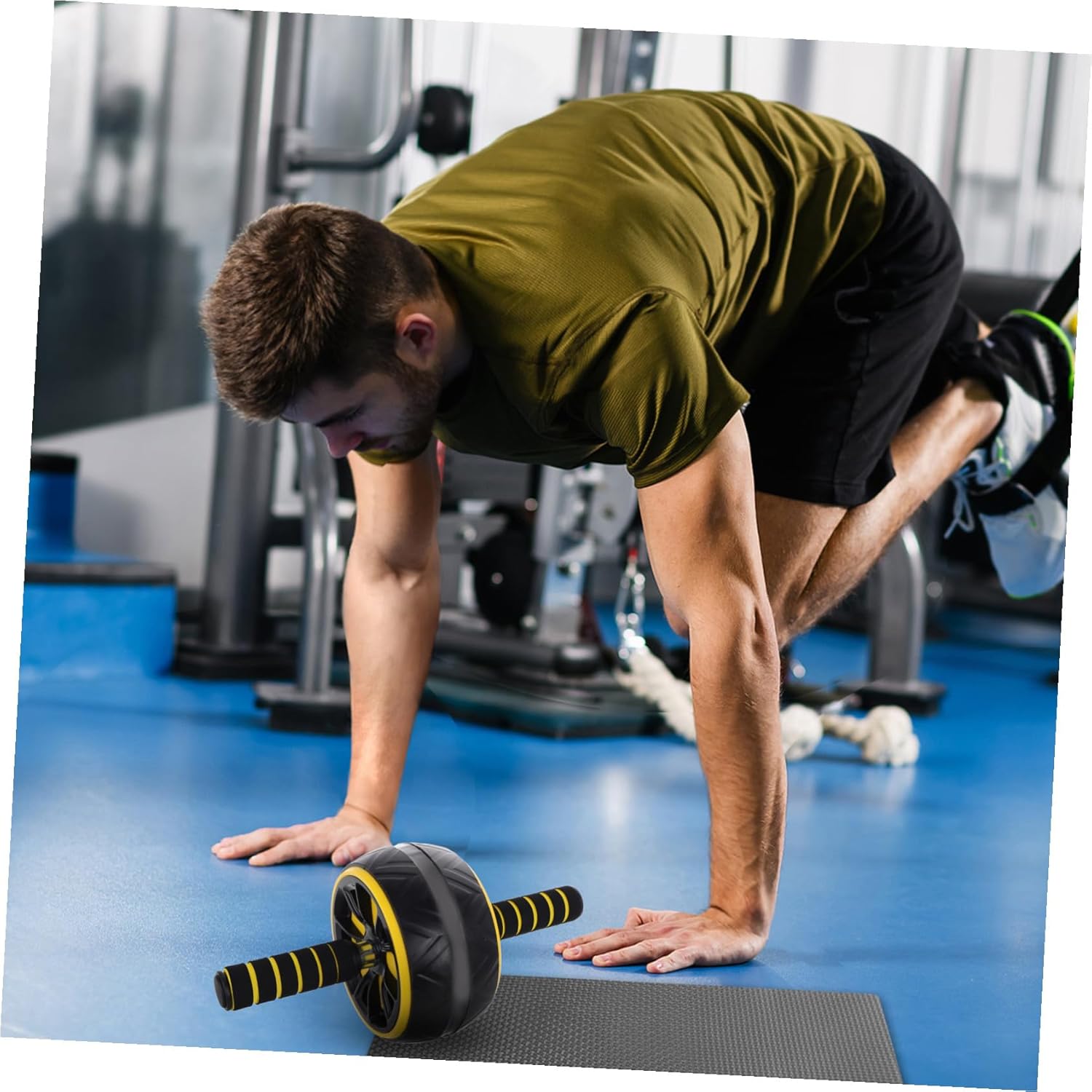 -Funcionamiento suave y silencioso: diseñado para rodar de manera suave y silenciosa, lo que le permite concentrarse en su entrenamiento sin distracciones. Esterilla de rueda abdominal para yoga.
