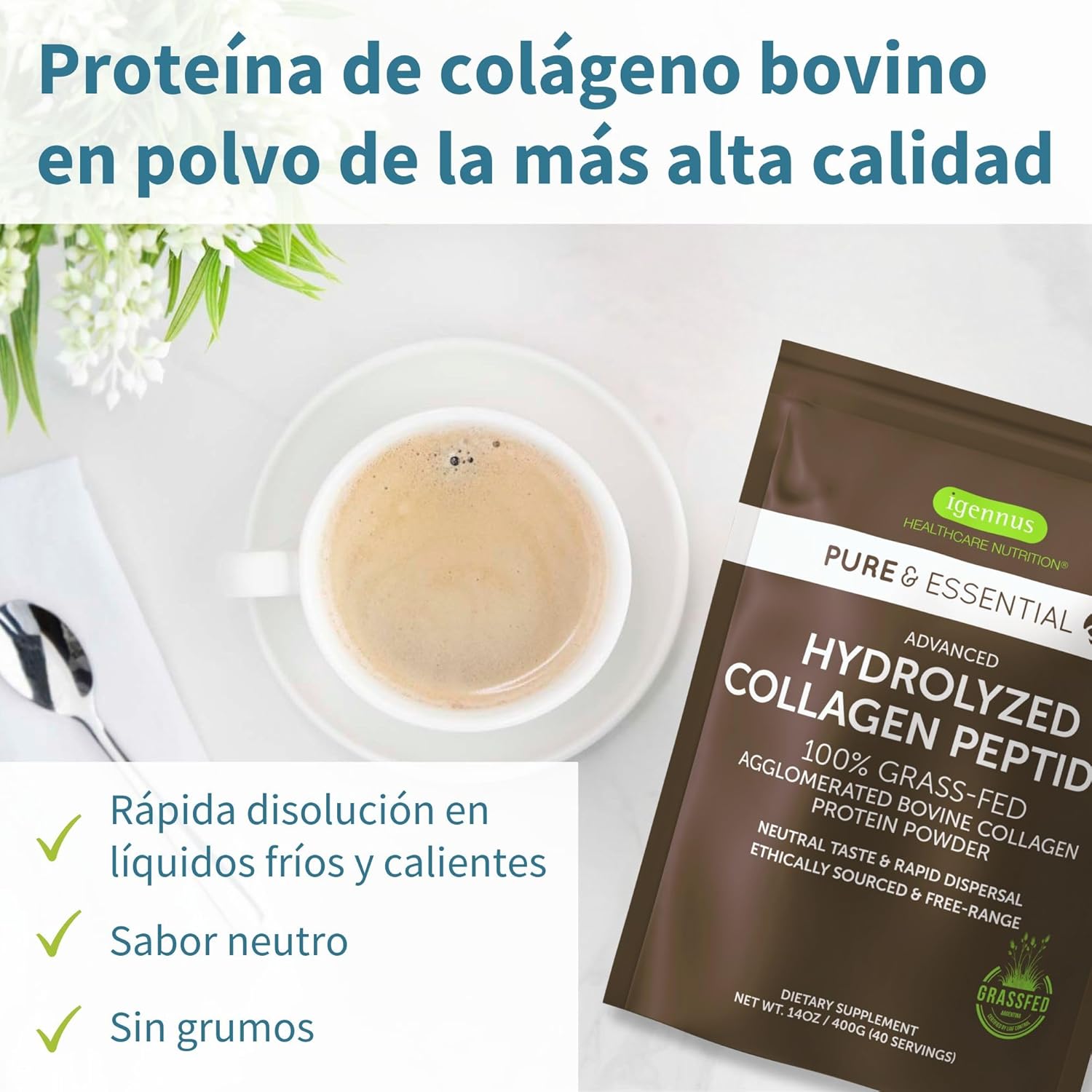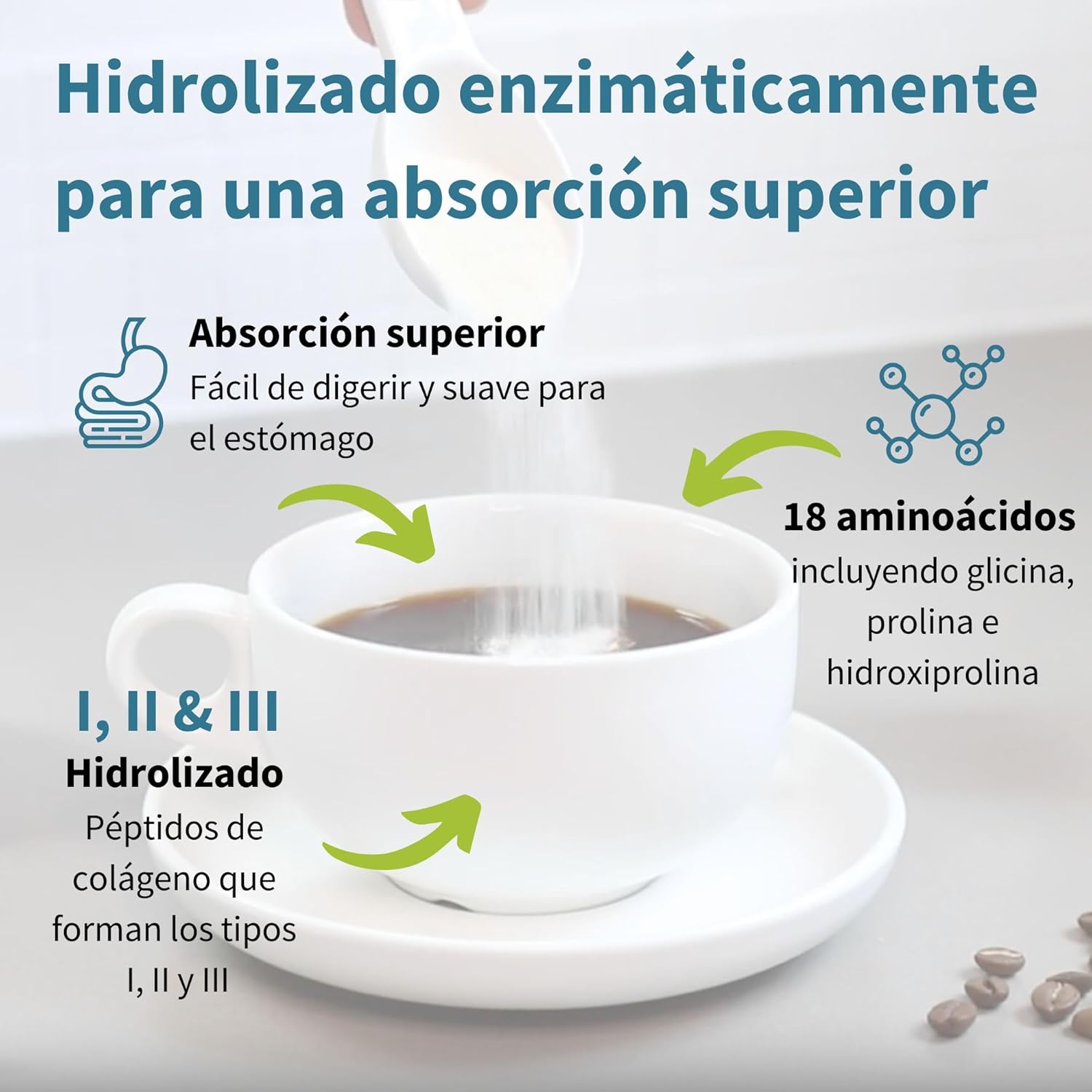 HYDROLYZED COLLAGEN: Enzymatically hydrolyzed bovine collagen peptides have higher bioavailability and are easily digestible. The body can use the peptides to produce the main types of collagen 1, 2 and 3 as required