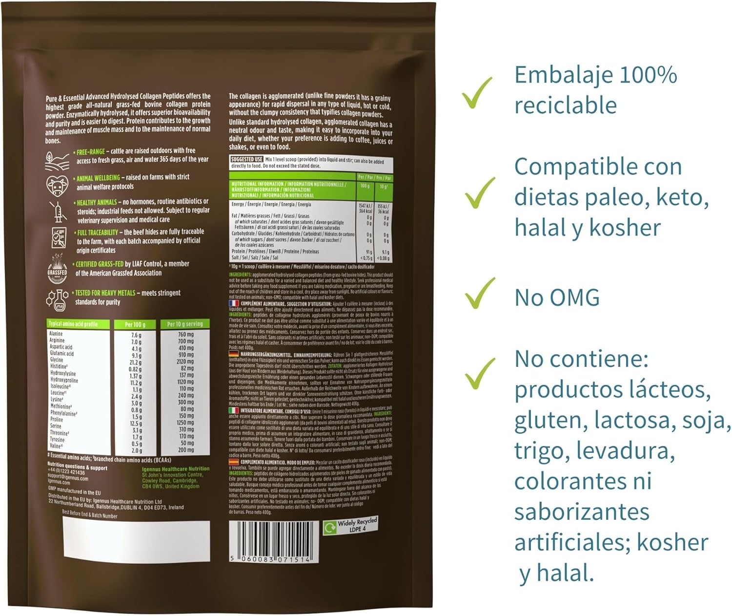 HIGH QUALITY AND CERTIFIED 100% GRASS-FREE – It is pure and natural, of the highest quality, collagen from farms raised beef with strict animal welfare protocols. No hormones, industrial feed, or routine antibiotics