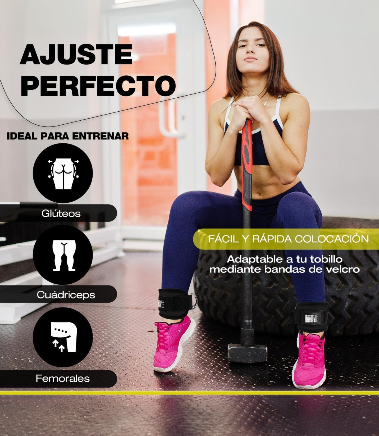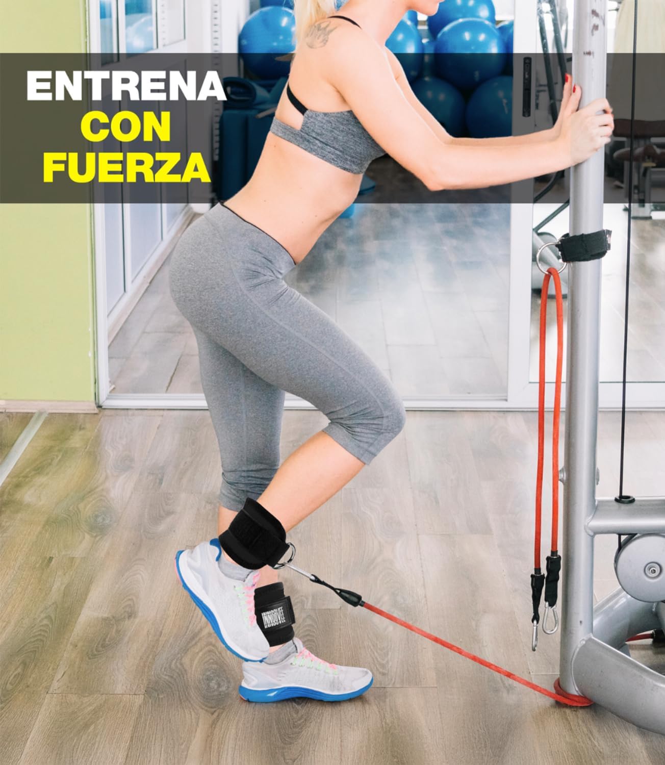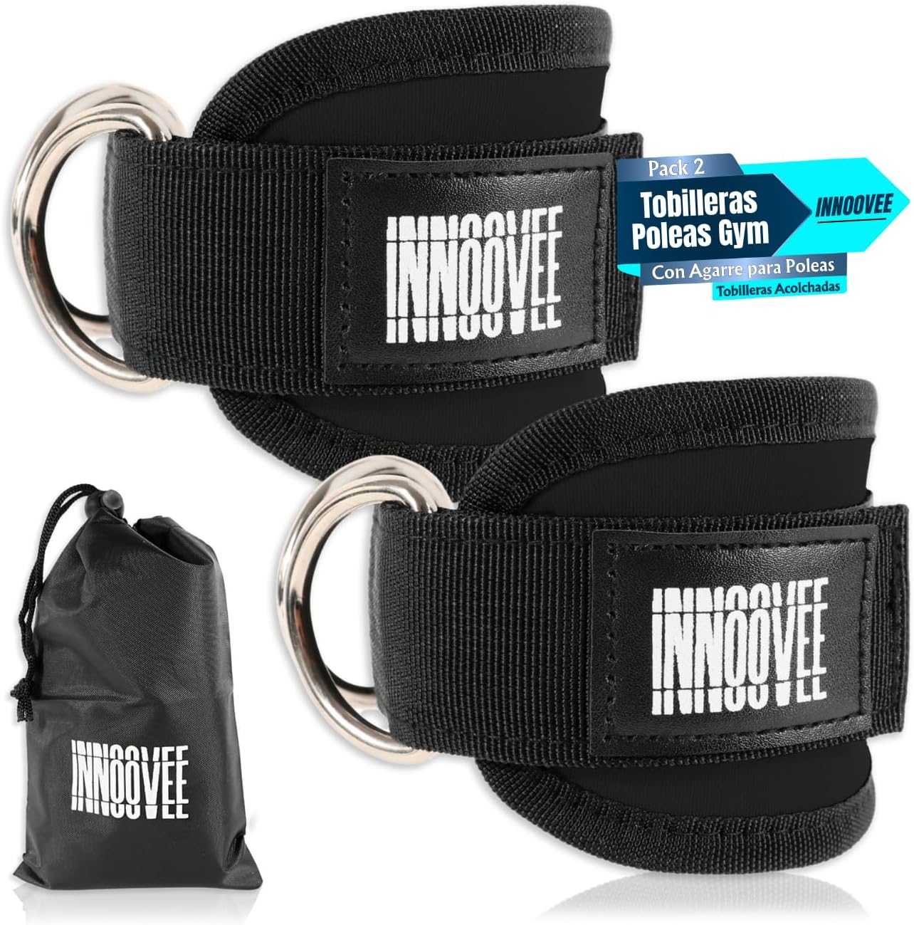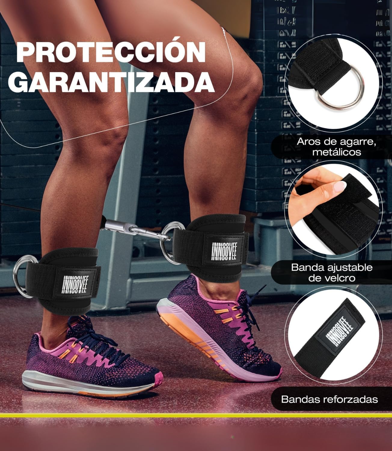 INNOOVEE Ankle Straps Gym Pack 2, Adjustable Ankle Brace for Buttocks and Fitness, Gym Accessories with Grip for Gym Pulleys, Padded Ankle Guards Men and Women, Gym and Fitness Pulleys.