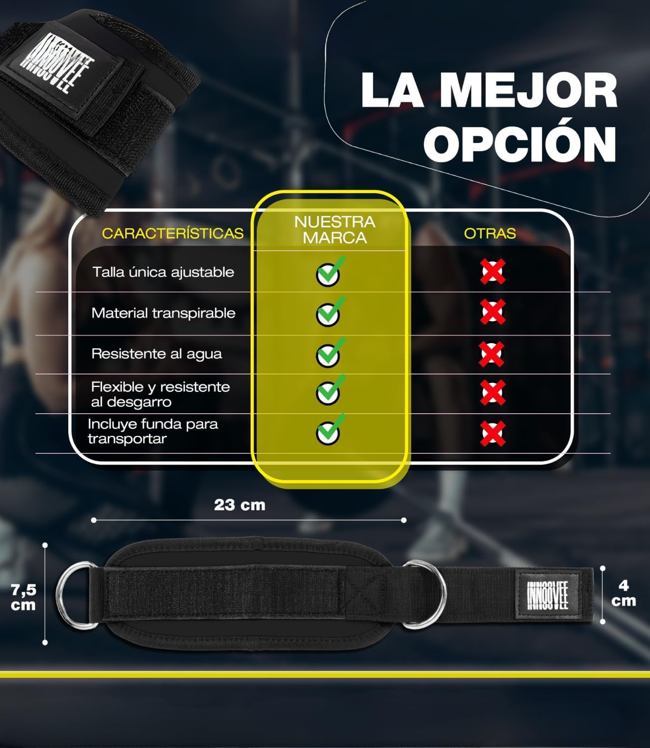 1️⃣ STRENGTHEN LEGS & BUTT WITH PRECISION: 💪 Our ankle braces gym pulleys and ankle weights are perfect for exercises like glute extensions, adductors and leg lifts. These gym accessories are essential for workouts in the gym or home gym, helping you improve your strength and endurance in the legs and glutes. 2️⃣ DURABLE & HIGH QUALITY MATERIAL:️♀️ Featuring double D-ring and reinforced stitching, our weighted ankle braces are designed to withstand the most demanding workouts. These women’s and men’s fitness accessories offer maximum durability, perfect for gym pulley and high intensity routines. 3️⃣ COMFORTABLE & SECURE FIT: ♀️ Our sports ankle braces feature adjustable velcro for a custom fit, making them the best gym accessories. The padded interior ensures that you can perform your gym workouts comfortably, without skin irritations for both men and women. 4️⃣ PERFECT FOR HOME WORKOUT OR AT THE GYM: 🏠 These ankle pulley and ankle braces for gym pulley are versatile, ideal for both home and gym workouts. They are women’s and men’s gym accessories that will help you tone and strengthen glutes and legs with maximum comfort. 5️⃣ EASY TO CARRY WITH PERSONALIZED POUCH – Each set of ankle pulleys comes with a custom pouch with our logo so you can easily take your gym accessories anywhere. Keep your gear tidy and ready for your workouts on the go. 6️⃣ STYLISH AND FUNCTIONAL DESIGN: ✨ With a refined and understated style, our fitness ankle sleeves not only offer performance, but also a touch of elegance. These fitness accessories and weighted anklets are ideal to accompany you in any workout session, both in the gyms and at home. 7️⃣ SATISFACTION GUARANTEE: We are committed to the quality of