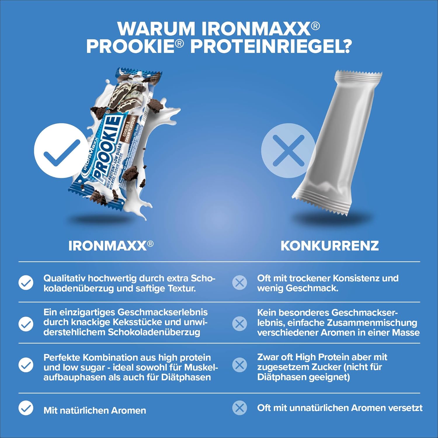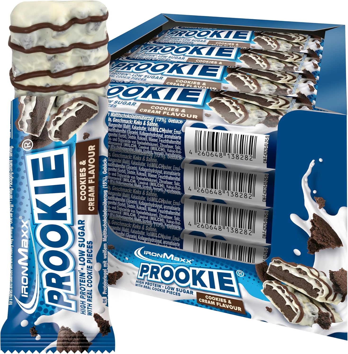 IronMaxx Prookie Cookies & Cream 16 x 45g Bars | Protein Snack with Cookie Chips and White Topping | Low Sugar | Great for On the Go and Post Workout