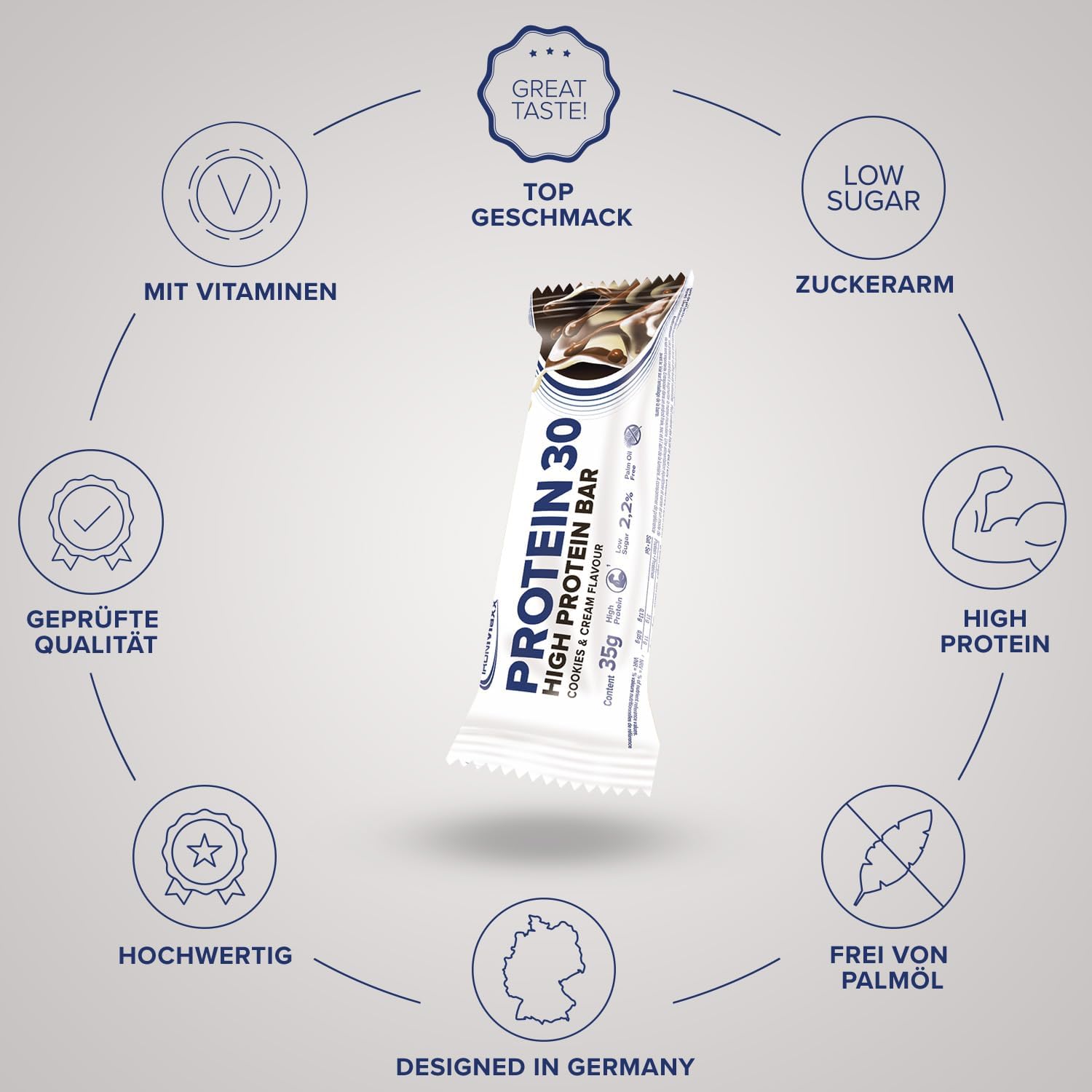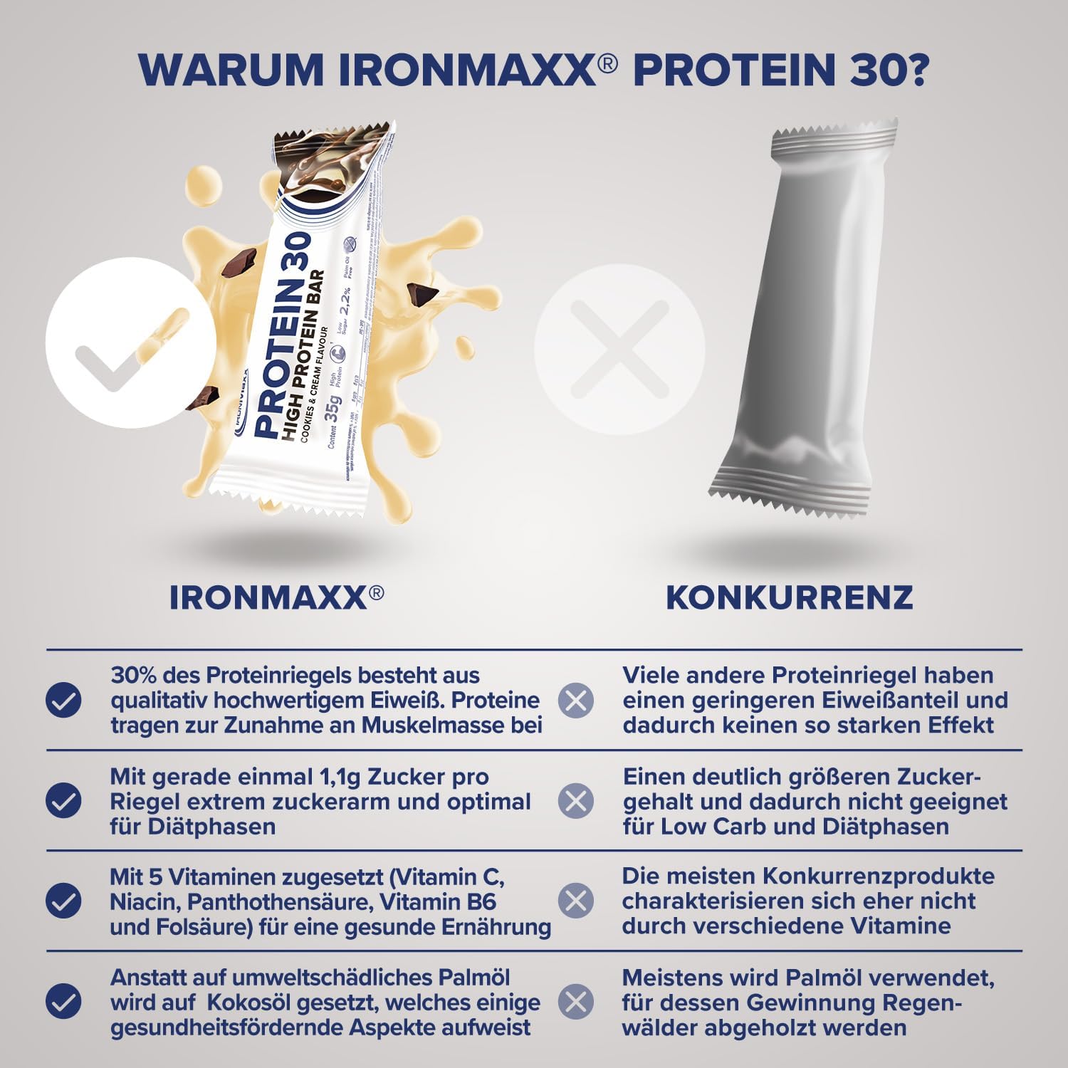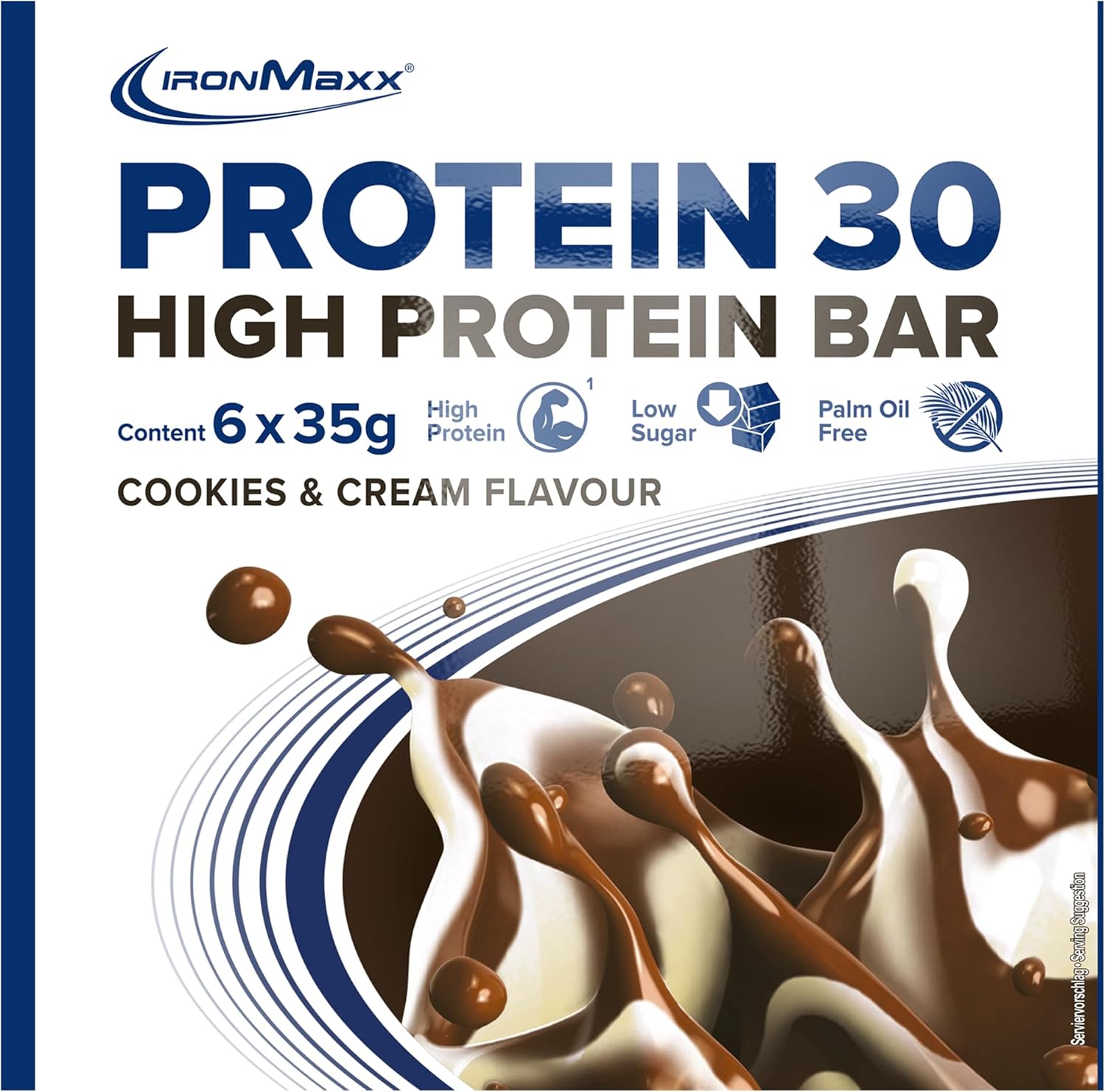 IronMaxx Protein 30- Protein Bars – Flavor: Cookies & Cream – 6 x 35g (Pack of 6 Bars)