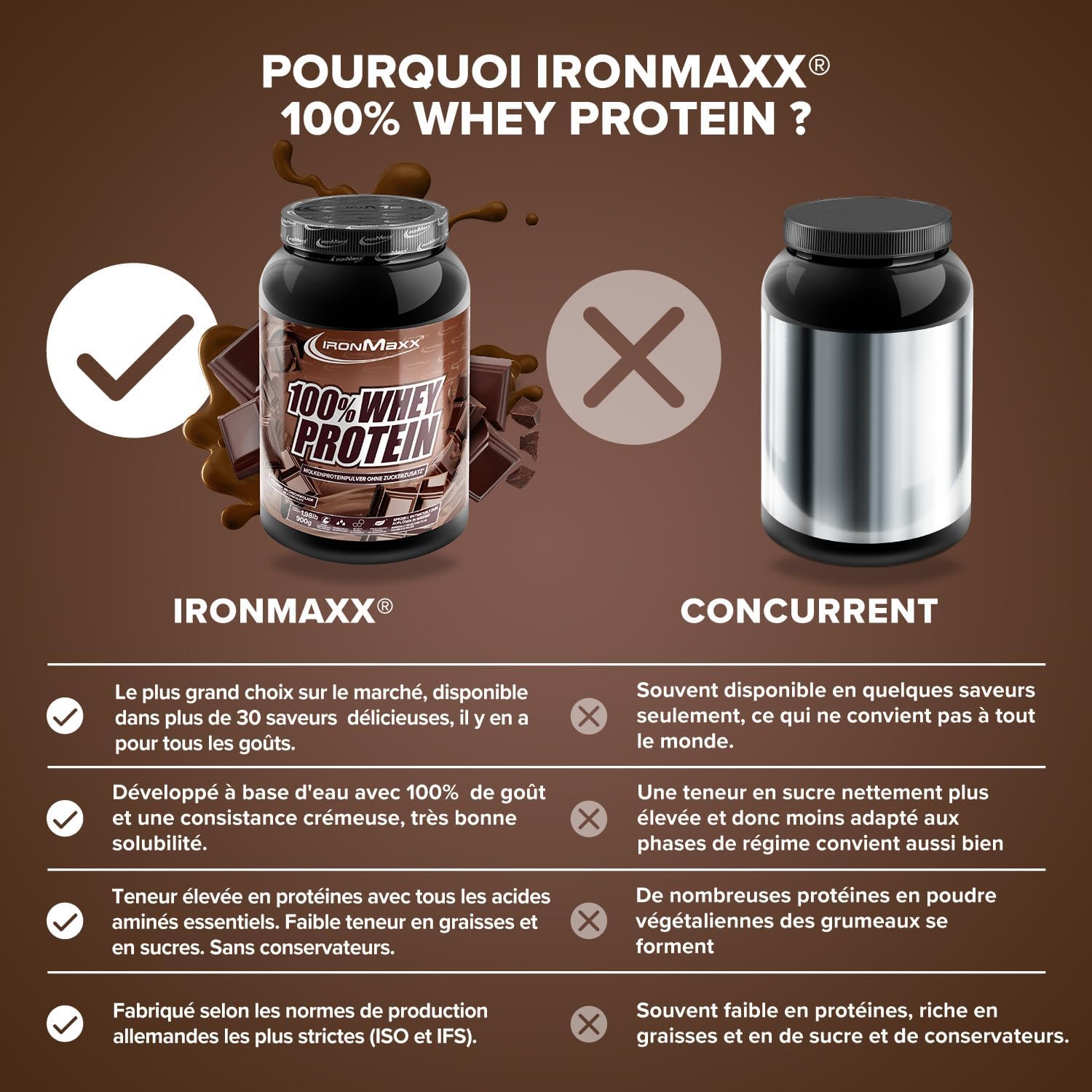 IronMaxx 100 Percent Whey Protein Powder/ Banana Yogurt Protein Powder/ Cookie & Cream/ Ecuadorian Chocolate Protein Shakes / Available in 31 Rich Flavors / 1 x 900g
