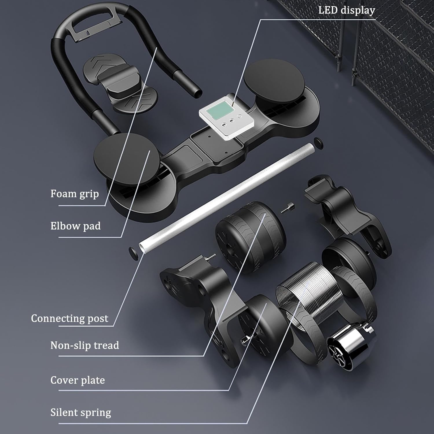 Kasmole Abdominal Roller | Abdominal Wheel Automatic Rebound Rollers for Abdominal Exercises with Elbow Support and Timer – for Abdominal Core Trainer