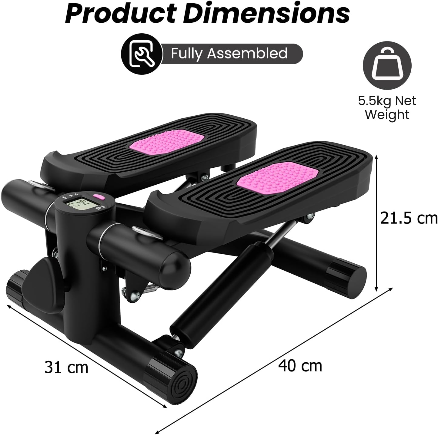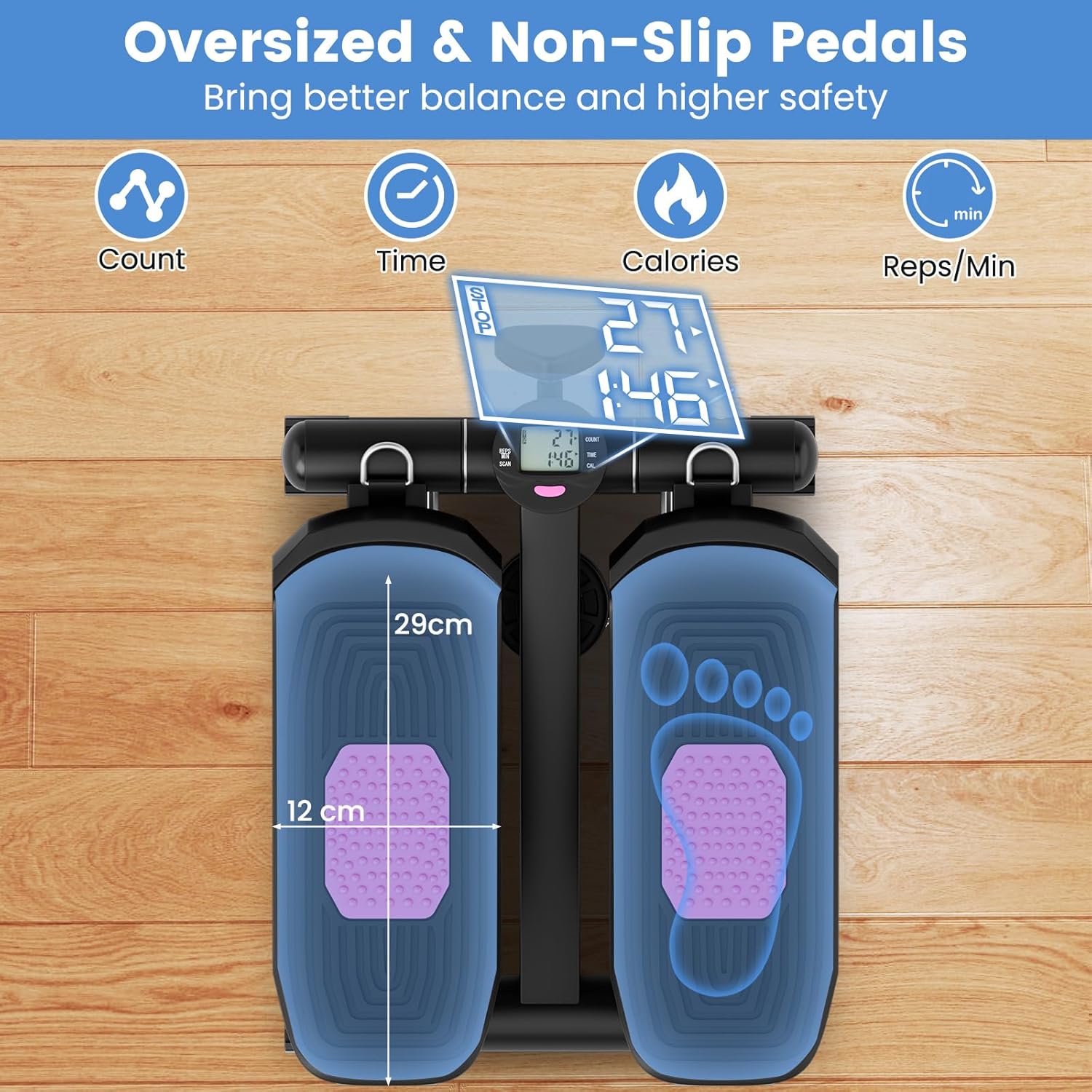With the mini fitness stepper at home, you can perform a complete and effective workout by working legs, hips, abdomen and arms. Adjust the intensity with the adjustable angle and height. Non-slip pedals ensure stability and safety, with sturdy and quiet hydraulic cylinders. LCD display allows you to monitor your progress. Compact and quiet, this stepper is perfect for small spaces and comfortable workouts at home or in the office without hassle. Maximize your fitness effectiveness with this handy equipment!