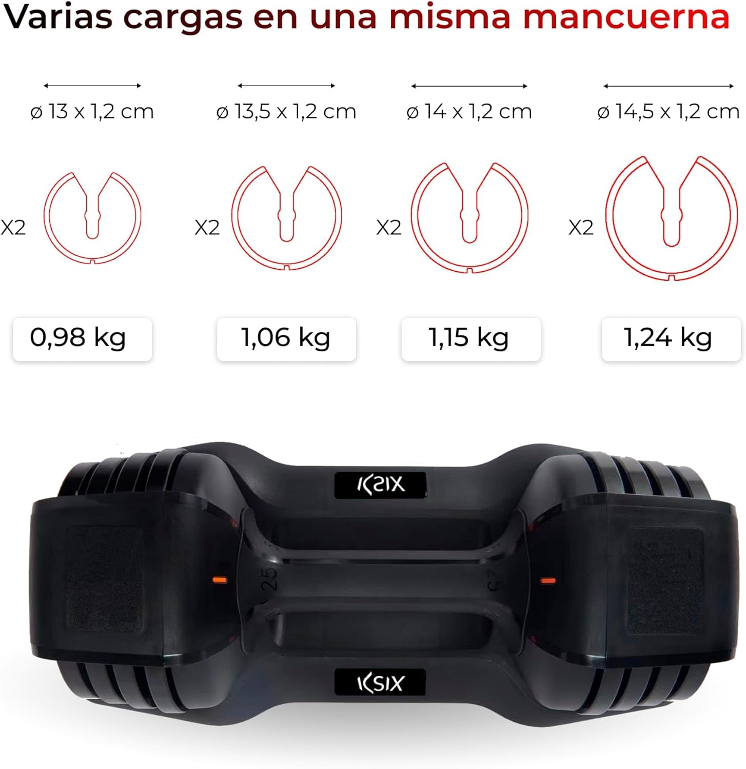 KSIX Adjustable Dumbbell 11 kg, 8 Adjustable Weights, Indoor Bodybuilding Trainings, Adjustable Weights up to 11 kg, Ergonomic Grip, for Gym or Home Sports