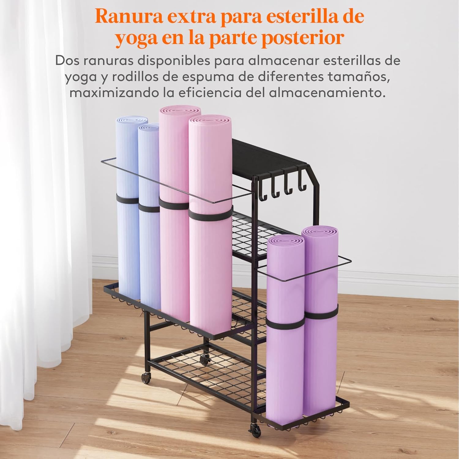VERSATILE STORAGE RACK: Yoga mat storage is perfect for storing your fitness equipment in a home gym, yoga studio or garage. It can accommodate various items such as yoga mats, foam rollers, yoga blocks, yoga wheels, dumbbells, kettlebells, jump ropes and resistance bands.