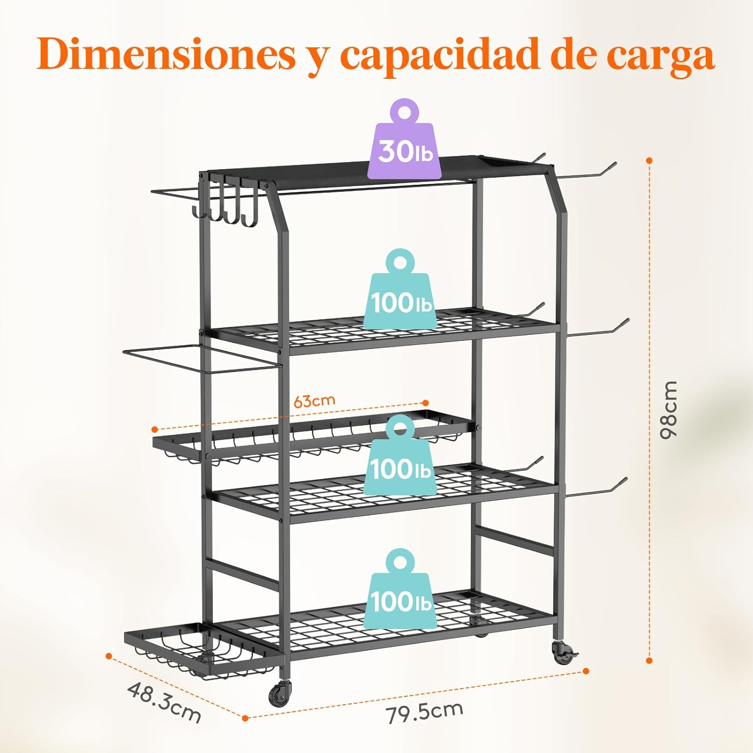 Construido para durar, este estante de almacenamiento es tanto robusto como confiable. Construido con metal de grado premium y con una capa antioxidante e impermeable, está diseñado para soportar un uso intensivo y resistir el desgaste para una durabilidad duradera.
