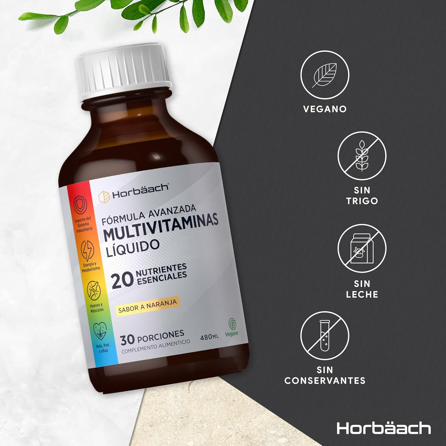 What are multivitamins and minerals? Multivitamins are an excellent complement to your daily wellness routine, especially if you want to cover nutrient deficiencies and support your overall health. Although vitamins and minerals can be absorbed through a balanced diet, it is not always easy to meet all nutritional needs through food alone. This is where dietary supplements come into play! Multivitamins are available in a variety of convenient forms, including capsules, powders, chewable gum, effervescent tablets, liquid sprays, drops and more, perfect for every lifestyle. Why choose Horbaach Multivitamins & Minerals? Horbaach’s multivitamin and mineral supplement has been expertly formulated to support your overall health and wellness. Each serving contains a powerful blend of 20 essential vitamins and minerals, carefully selected to meet your daily nutritional needs. A single dose of 15 ml (just one teaspoon!) provides a solid combination of nutrients.