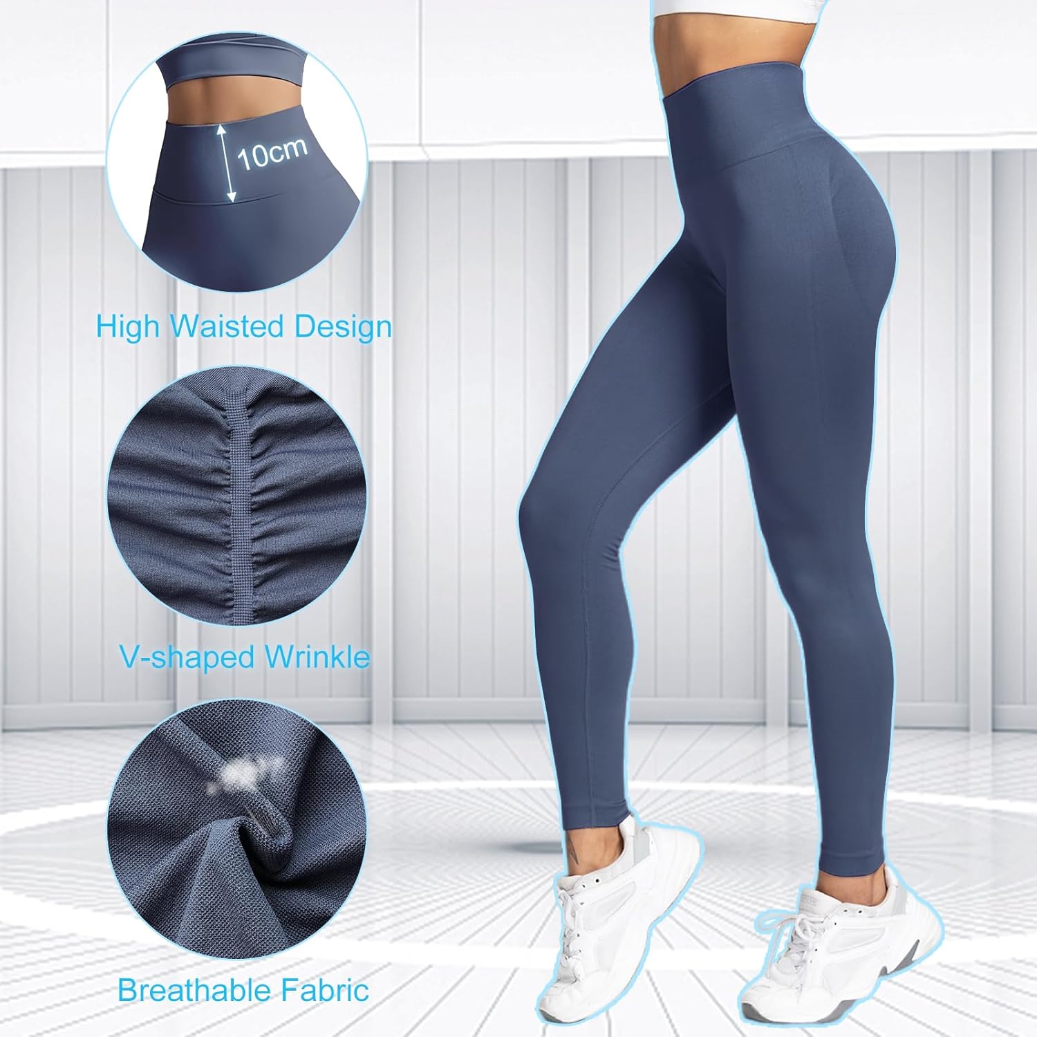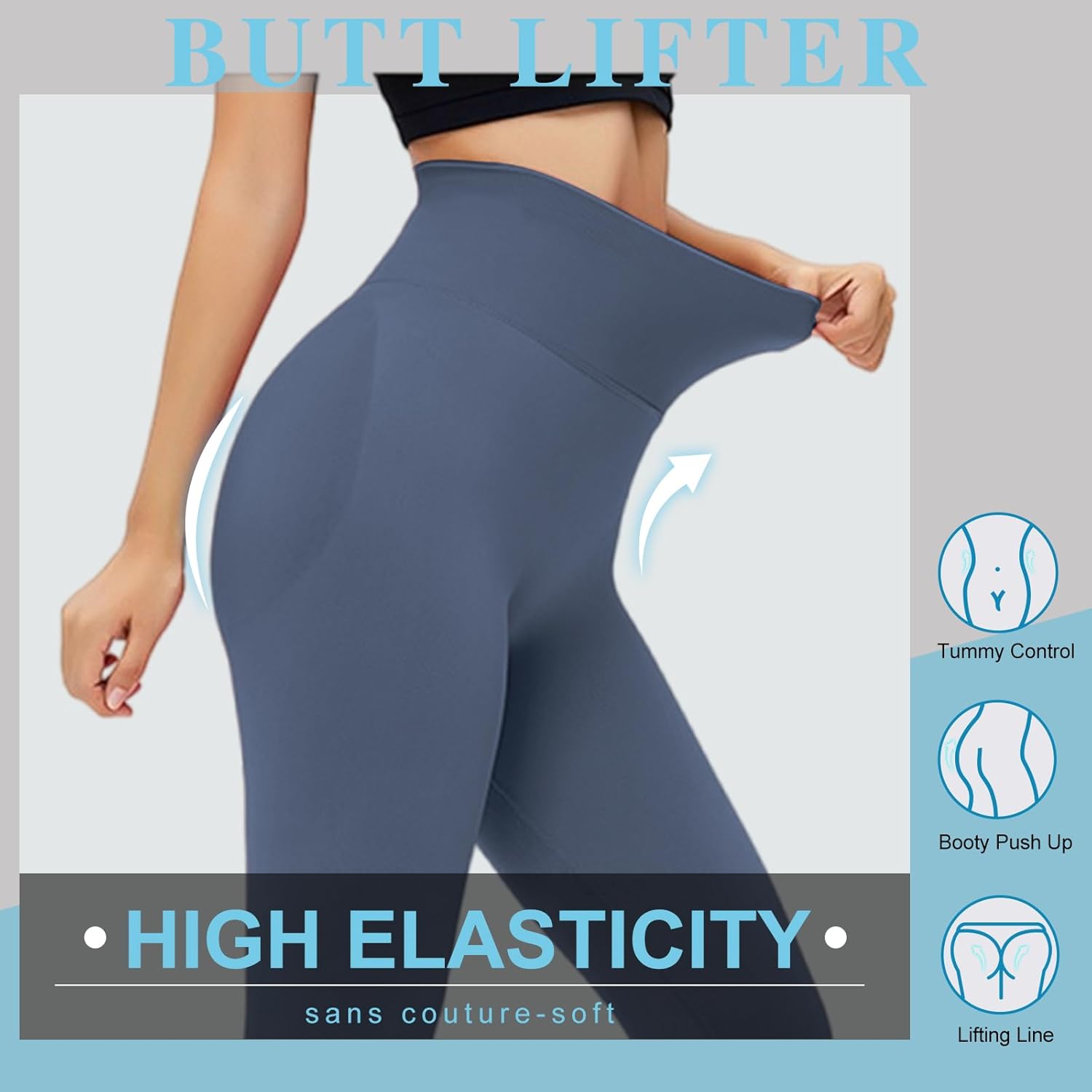 Lishang Women’s Sports Leggings Push Up Anti-cellulite Tights High Waist Elastic Opaque Sports Scrunch Butt Leggings for Fitness Yoga Running