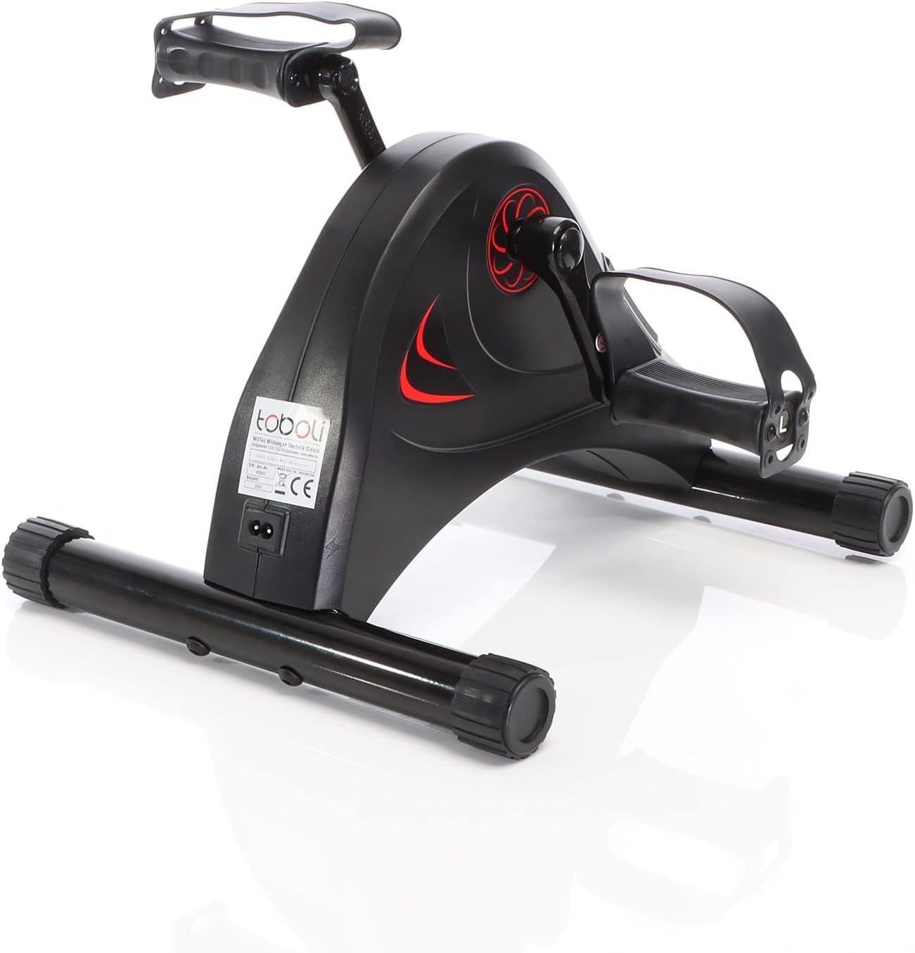 With this LUXTRI mini exercise bike you don’t need much space to get your legs or arms in motion. The electric pedaler has a compact dimensions of 39 x 35 x 32.5 cm. Therefore, it can be placed in any room, so it is also possible to train in the office or in the kitchen. With the static pedals you can watch your favorite series and get your muscles in shape at the same time. The 80-watt electric pedeler has an LED display that indicates distance, time, speed and calories burned. To strengthen fitness with the appliance, the resistance can be individually adjusted between levels 0 and 5. In addition, it is possible to choose between 12 speed levels to vary the workout. The feet of the exercise bike are made of steel to ensure the necessary stability. The housing and pedals are made of plastic, so this is a robust sports equipment that can withstand a maximum load of 120 kg. To ensure optimal operation of the pedals, the mini bike is equipped with an iron flywheel.