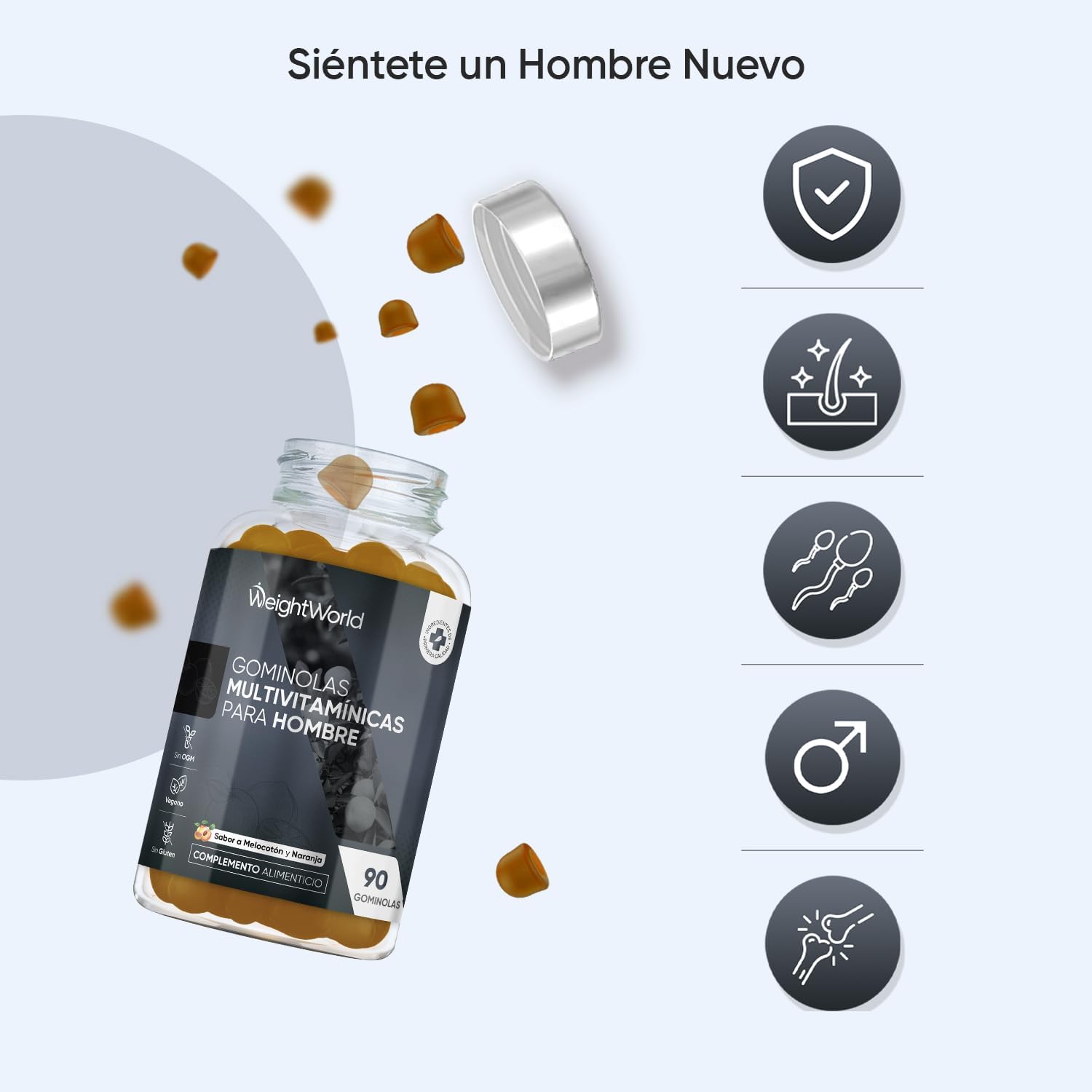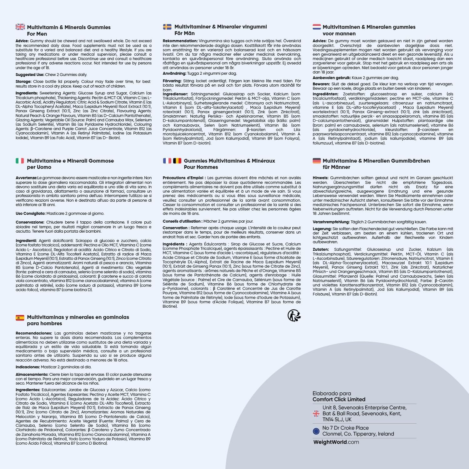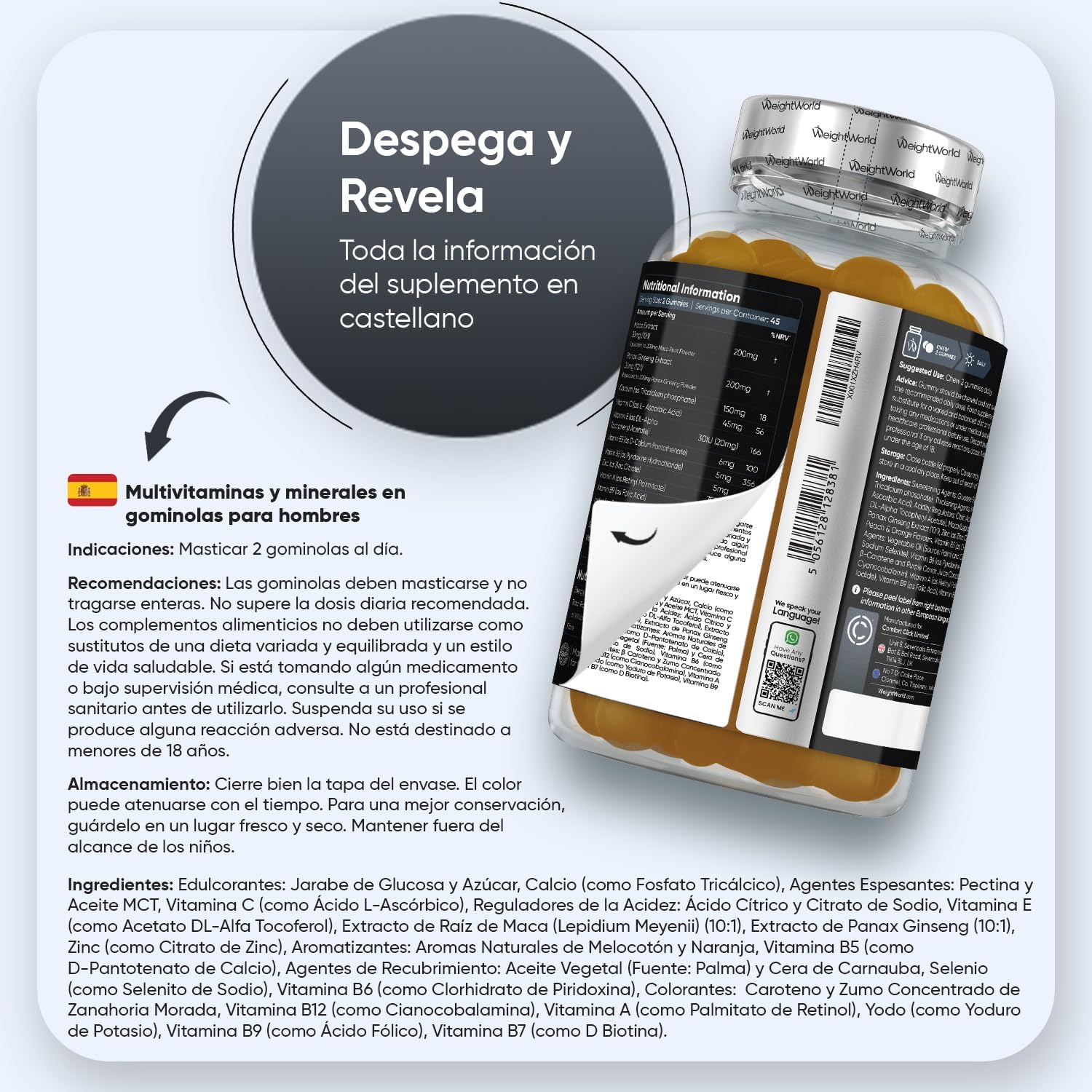 Why Choose WeightWorld Men’s Multivitamin? – Regain confidence and feel fulfilled with these delicious vitamin gummies for men! Designed to accompany the daily rhythm of men at all stages of life. WeightWorld Vitamin Complex will be the push to meet any challenge… and they’re delicious! The Beating Complex Every Challenge – Open the door to a new daily pace with these gummies, composed of no more and no less than 14 vitamins and minerals. According to EFSA, while Vit C and Vitamin A contribute to the normal functioning of the immune system, calcium contributes to the normal maintenance of muscles and Vitamin B1 contributes to normal energy metabolism.