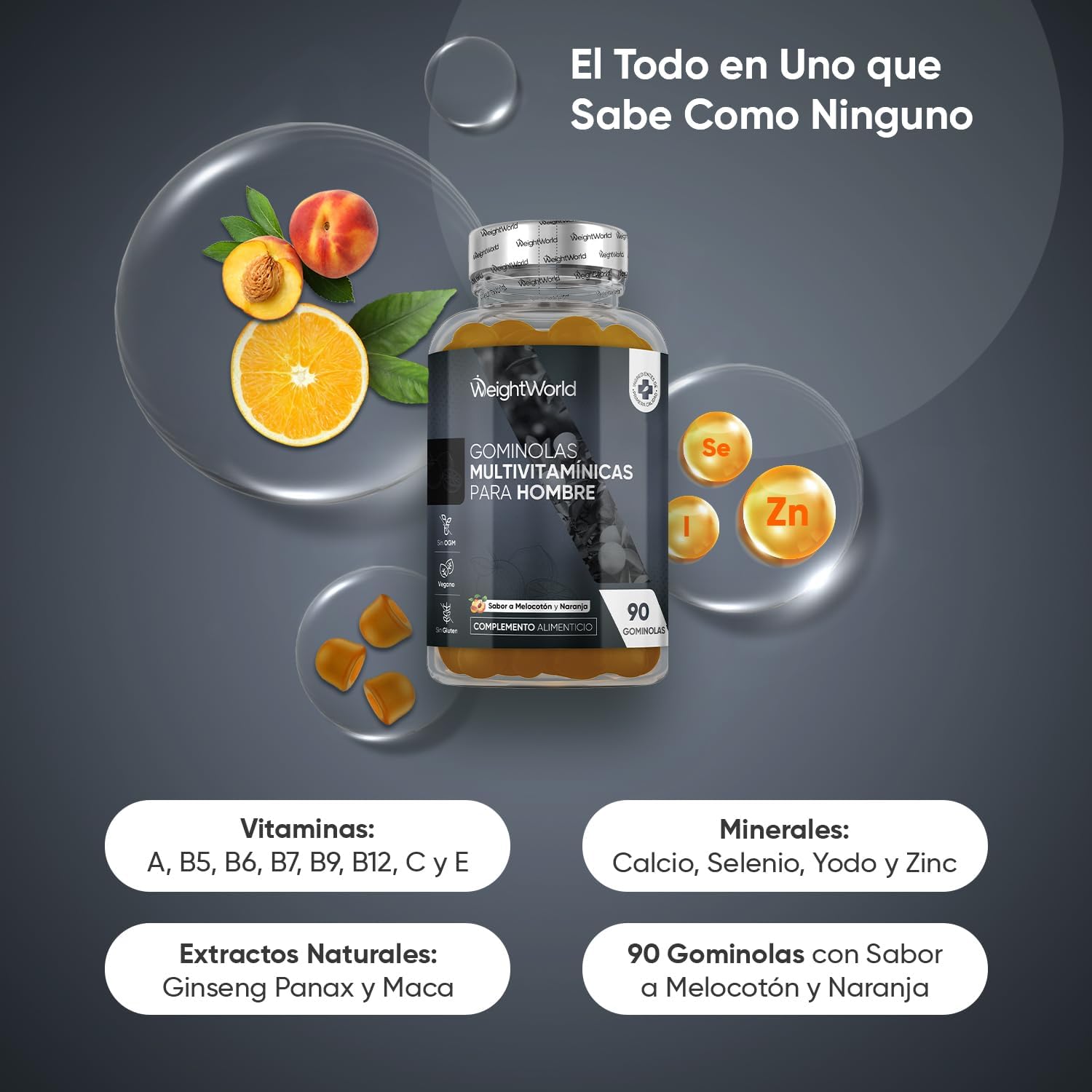 Man Multivitamin with Minerals – 90 Gummies Peach and Orange Flavor – 14 Essential Nutrients – Men Complex of B Vitamins, Vitamin C, Calcium, Zinc Maca and Biotin – Vegan and Gluten Free