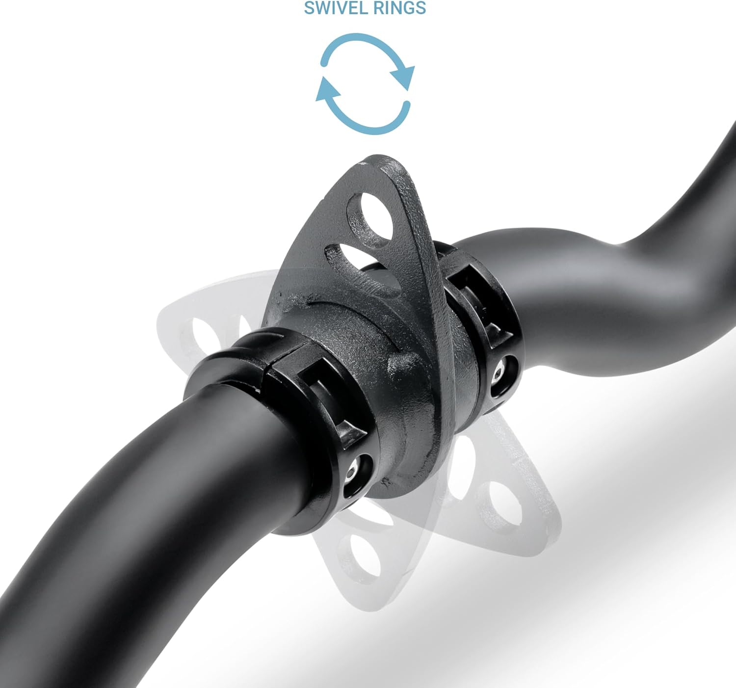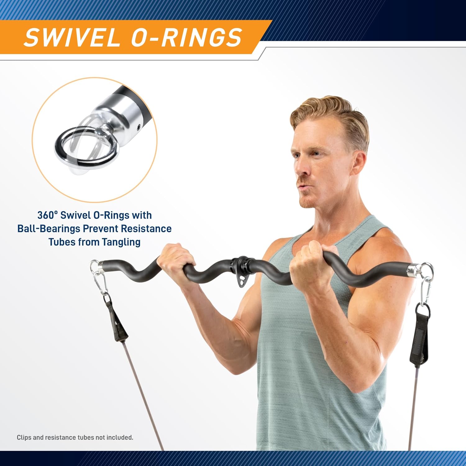 The exercise bar includes swivel points on which the resistance tubes are connected to easily adjust the bar as you begin your workout.