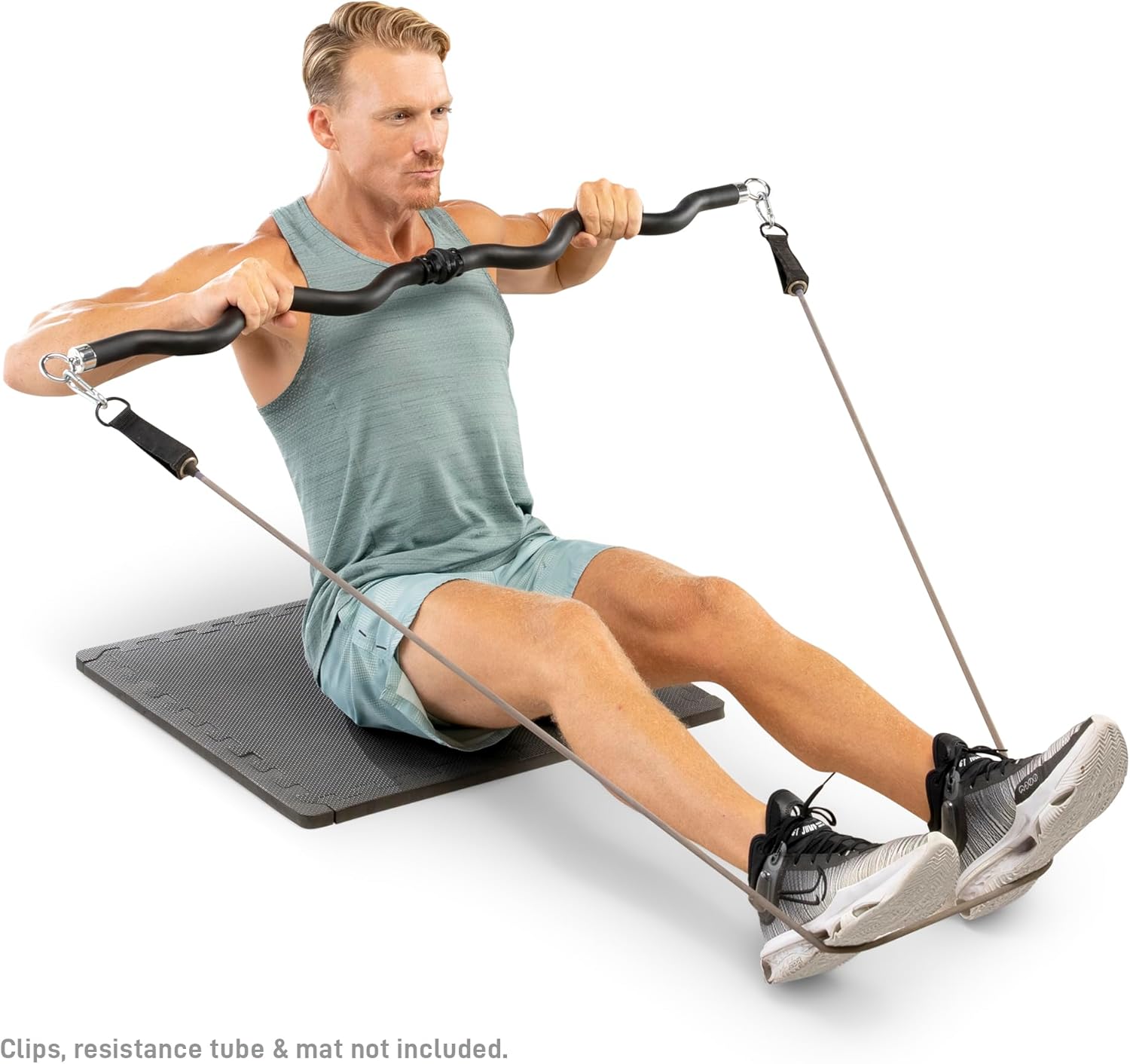 The Marcy Deluxe BBEB-7355 Exercise Bar provides a full body workout in your home gym, backyard or anywhere you have a little room to work out. Perform curls, seated rows, and more with the Deluxe Exercise Bar. Simply add resistance tubes (not included) to the bar and you will have access to a wide variety of workout options.