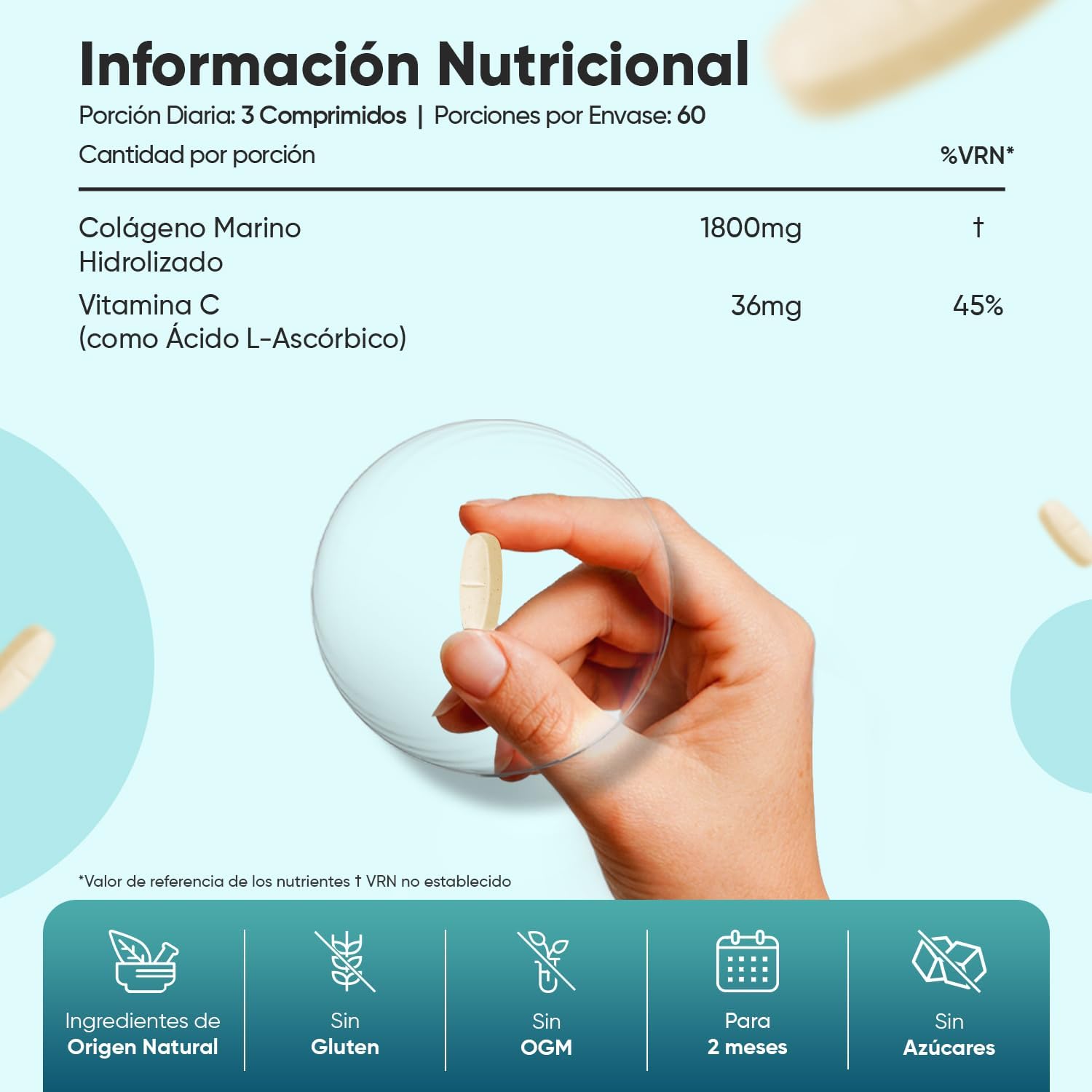Hydrolyzed Collagen with Natural Vitamin C – This supplement has been formulated with naturally occurring ingredients, gluten free, lactose free and free of genetically modified organisms (GMOs). Ideal for those looking for the power of a complex that combines visible beauty and invisible solidity. Each pack includes 180 tablets, equivalent to a full two-month supply.