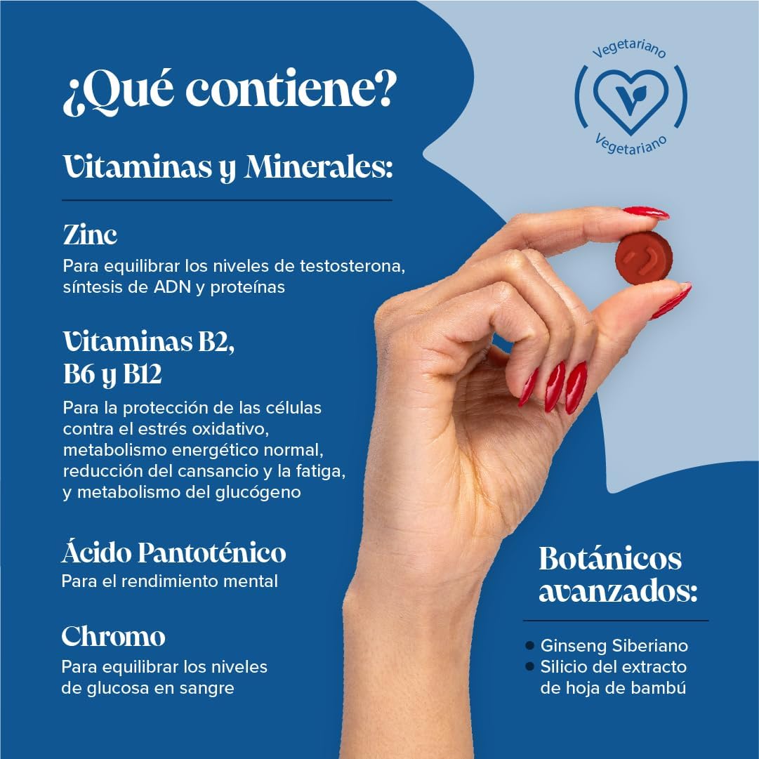 MOOD, COGNITIVE FUNCTION, MUSCLES AND BONE IN MEN – Vitamin B6 contributes to normal hormone regulation and cognitive function (EFSA). Mood imbalances can lead to stress and anxiety in daily life. By adding our man multivitamin to your daily routine, this adaptogen blend aids in hormone regulation and boosts mood. Vitamin D and zinc contribute to the normal functioning of muscles and bones (EFSA).