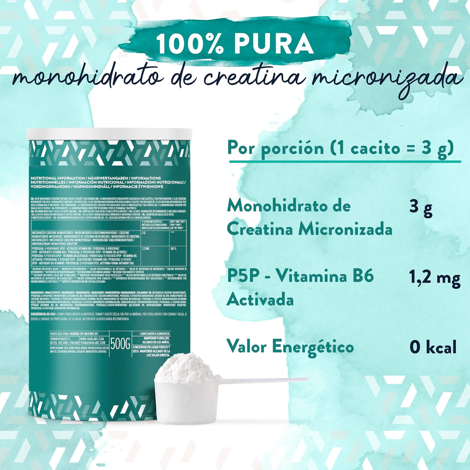 MAXIMIZE RESULTS: Our Creatine Monohydrate Powder is designed for maximum efficiency, with a highly bioavailable formula that delivers results. This creatine monohydrate supplement stands out for being fat, carbohydrate and sugar-free, making it a clean choice for sports enthusiasts. Made in Europe, this product guarantees high quality standards. Each serving of 1 scoop (3 g) mixes easily into hot or cold beverages.