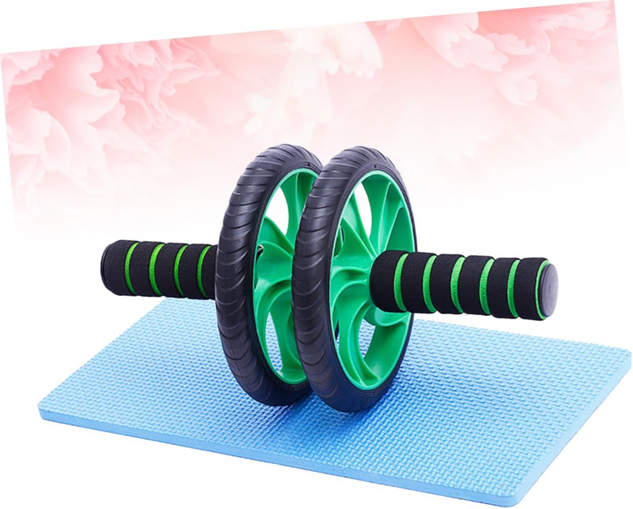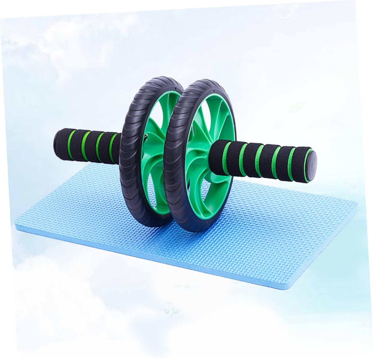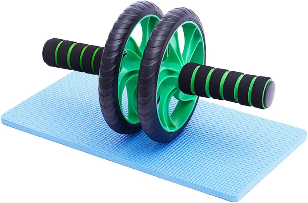 Milisten Rodillo Abdominal Doble Rueda Verde Con Rebote Automático y Alfombrilla Para Rodillas Equipo Fitness Para Entrenamiento Casa y Pérdida De Peso