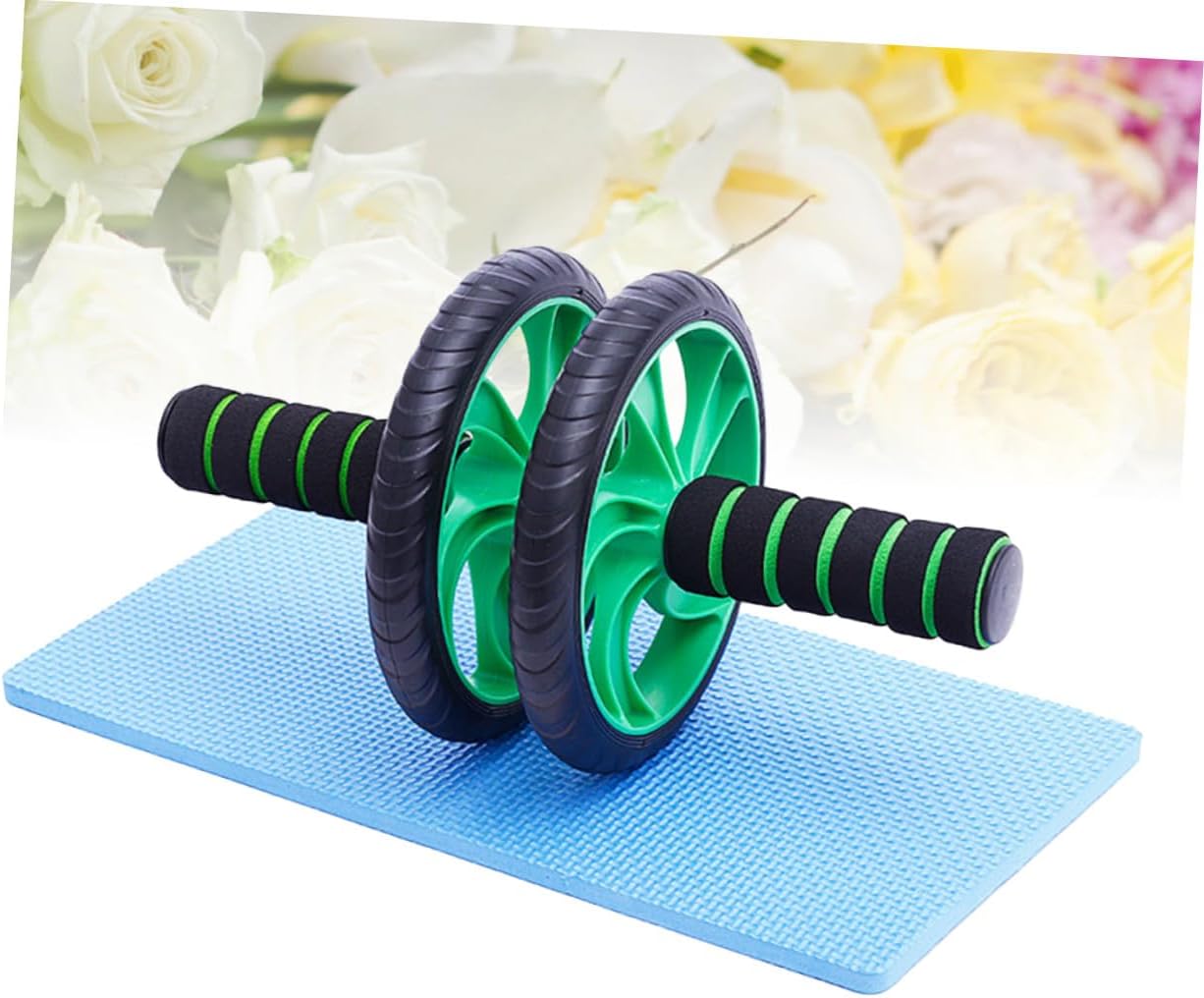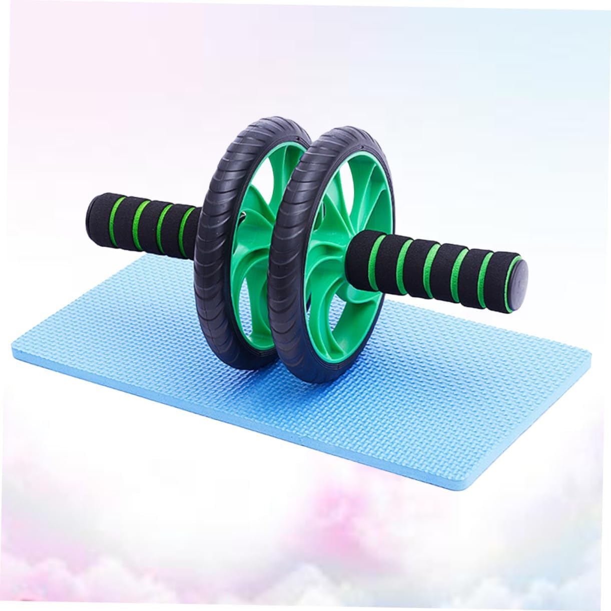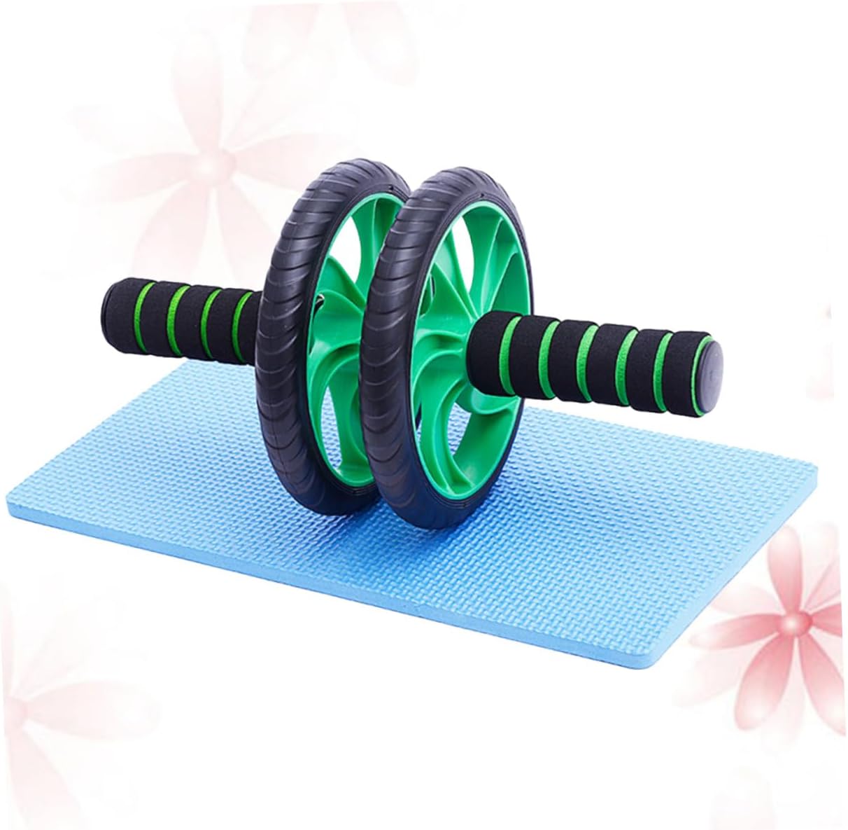 Milisten Rodillo Abdominal Doble Rueda Verde Con Rebote Automático y Alfombrilla Para Rodillas Equipo Fitness Para Entrenamiento Casa y Pérdida De Peso