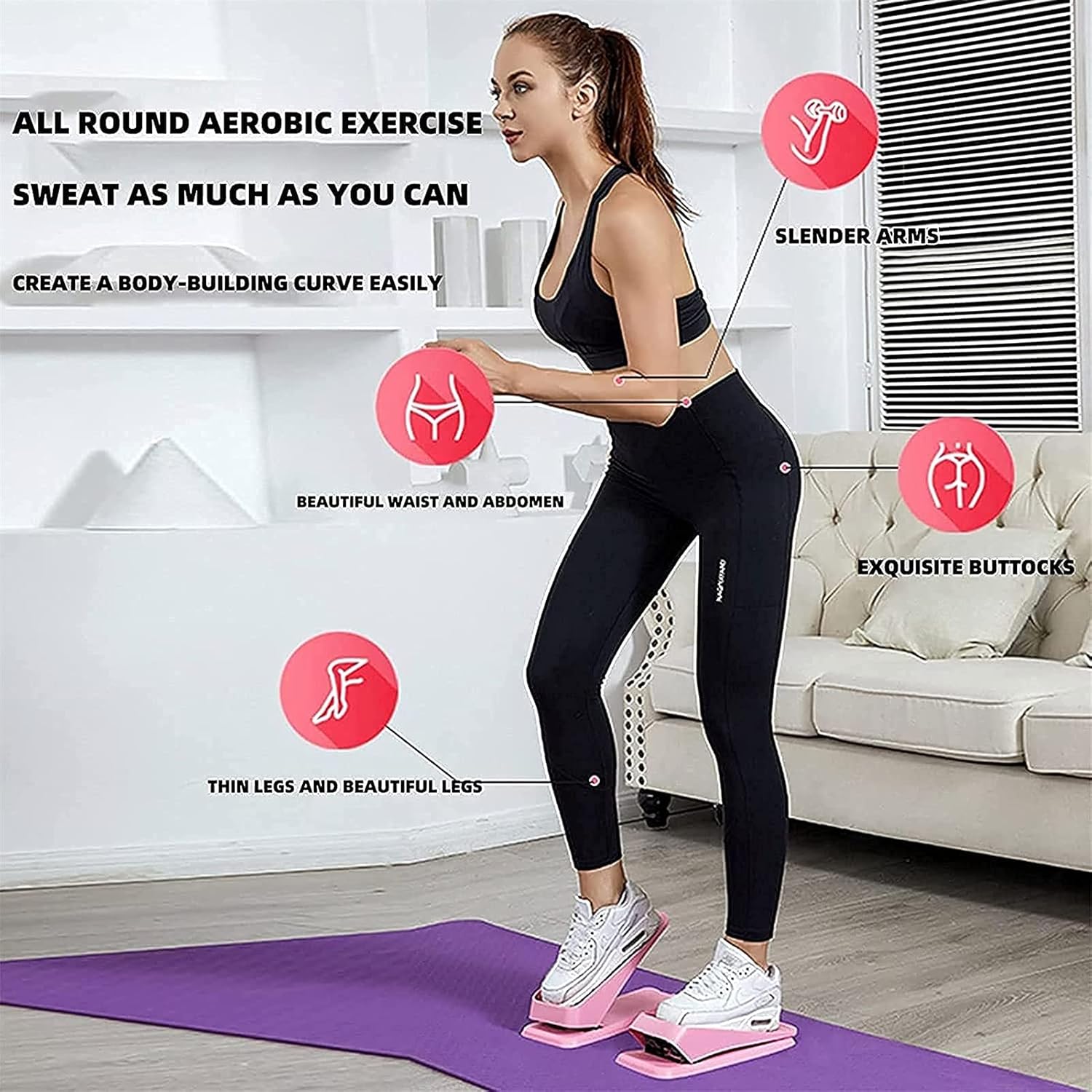 [CON BANDAS DE RESISTENCIA]: Equipado con bandas de entrenamiento extraíbles, el stepper tonifica la cintura, los muslos, la parte superior del cuerpo y más.