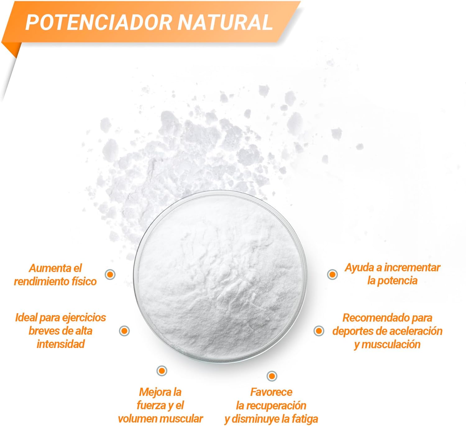Creatine allows to accumulate ATP (Adenosine triphosphate, cellular energy source) in muscle tissue and release it in sufficient quantities during the exertion of the effort. It also promotes muscle recovery.