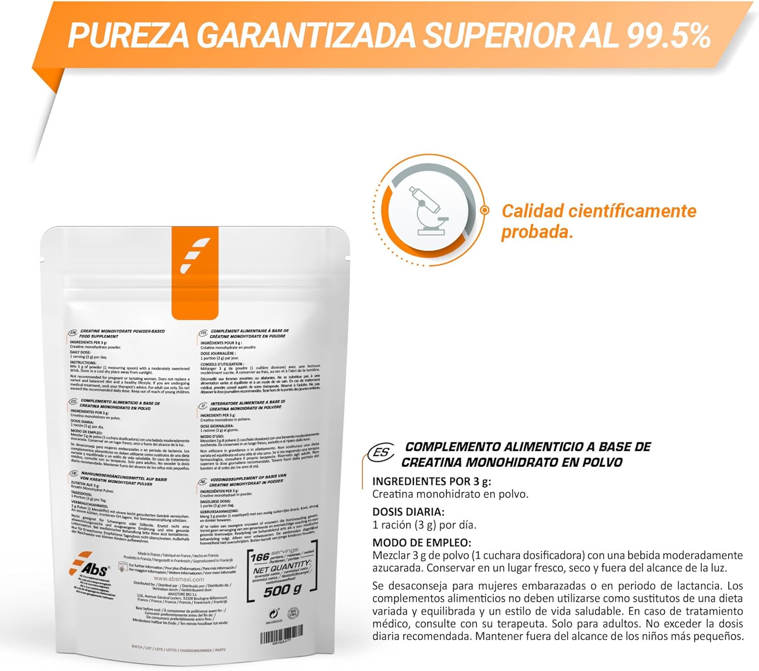 WHY BUY OUR CREATINE MONOHYDRATE POWDER? Creatine monohydrate is the most studied form for its contributions to the body and it has not been seen or shown that other forms of creatines are superior to this. We propose a high quality CREATINE MONOHYDRATE POWDER WITHOUT ADDITIVES and with a MINIMUM PURITY GUARANTEED OF 99.5%, which indicates that practically all our powder is creatine. This sets us apart by offering exceptional quality! Our Creatine monohydrate is vegan friendly and MO has a taste so you can combine it not only with water, but also with smoothies or yoghurts.