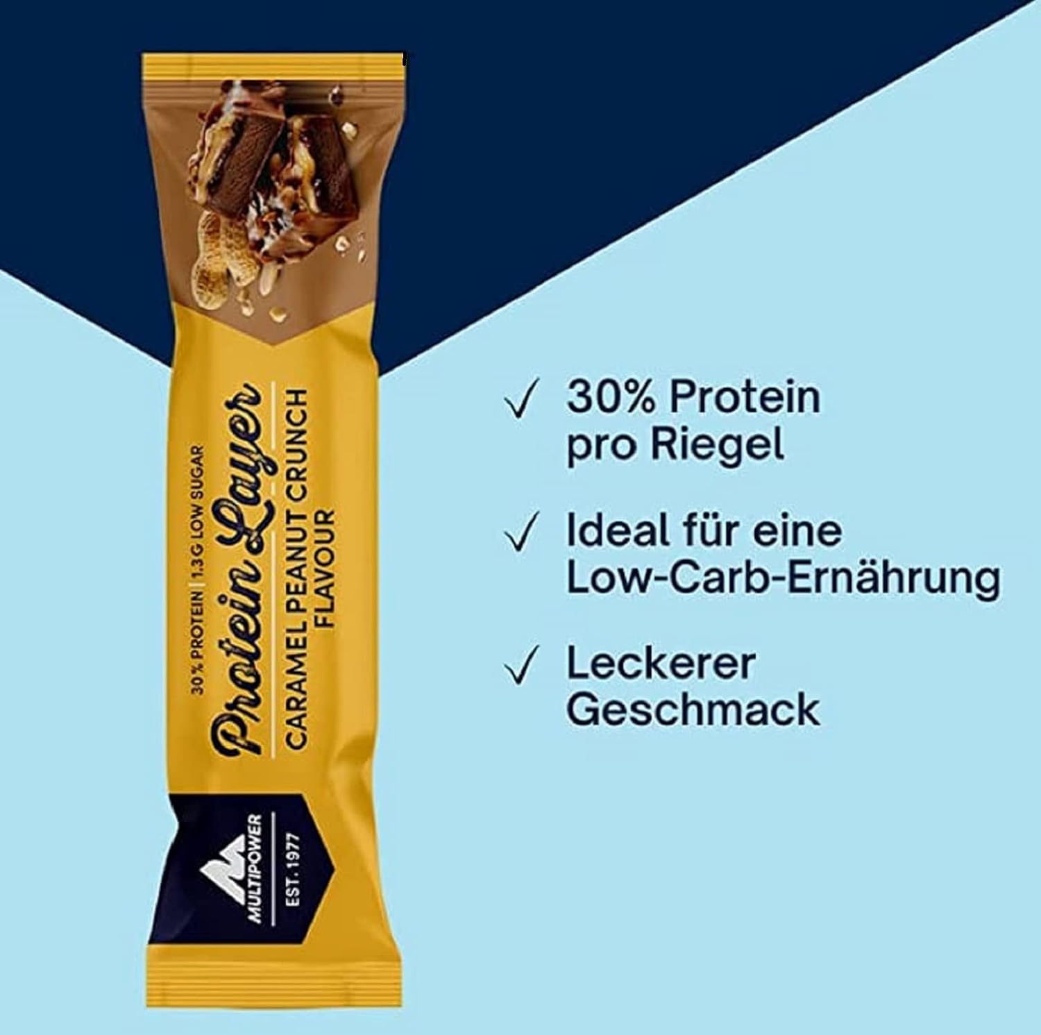 Delicious taste: with caramel cream, peanuts and a coating of maltitit milk chocolate, the Power Layer is the ideal mid-season snack and convinces with its delicious taste.