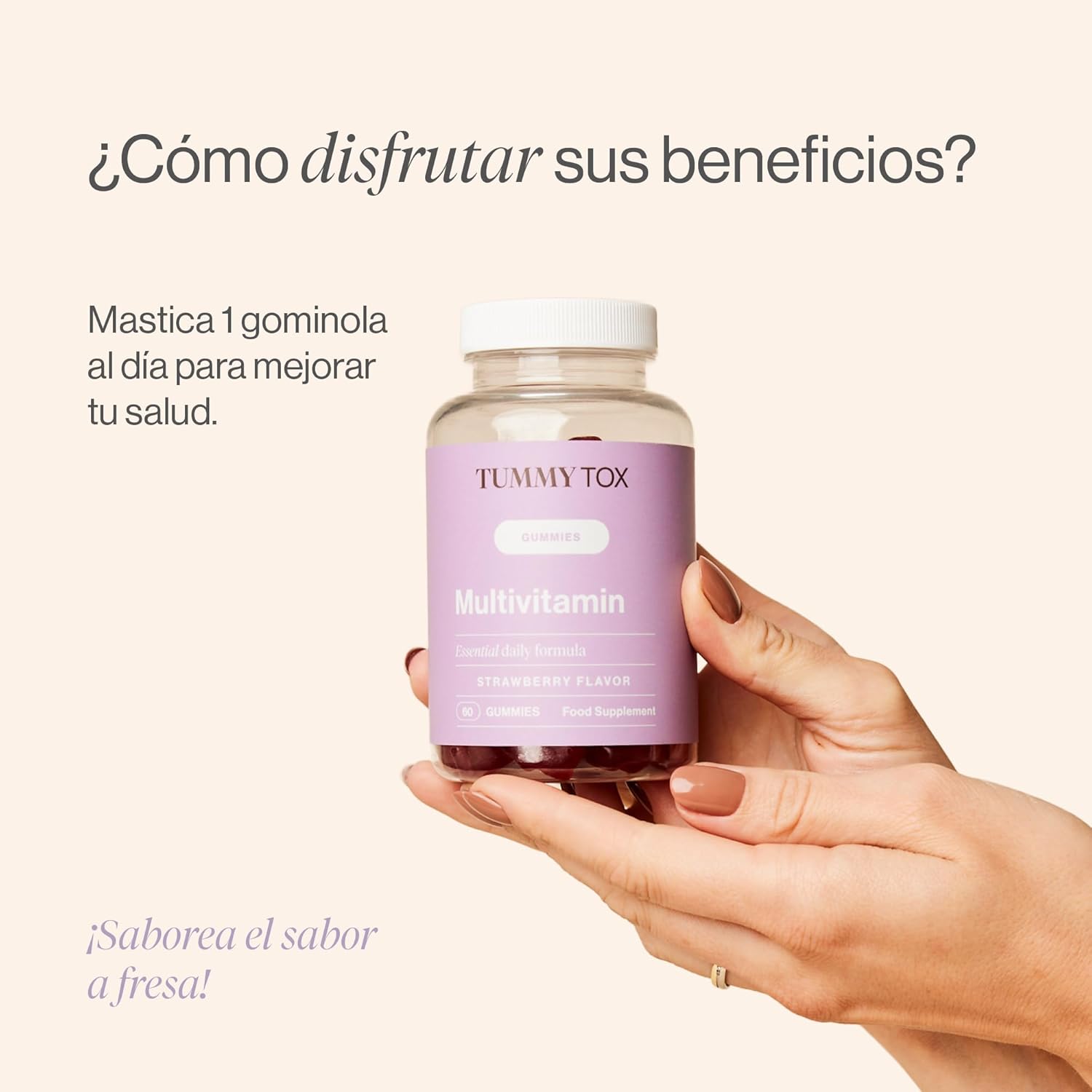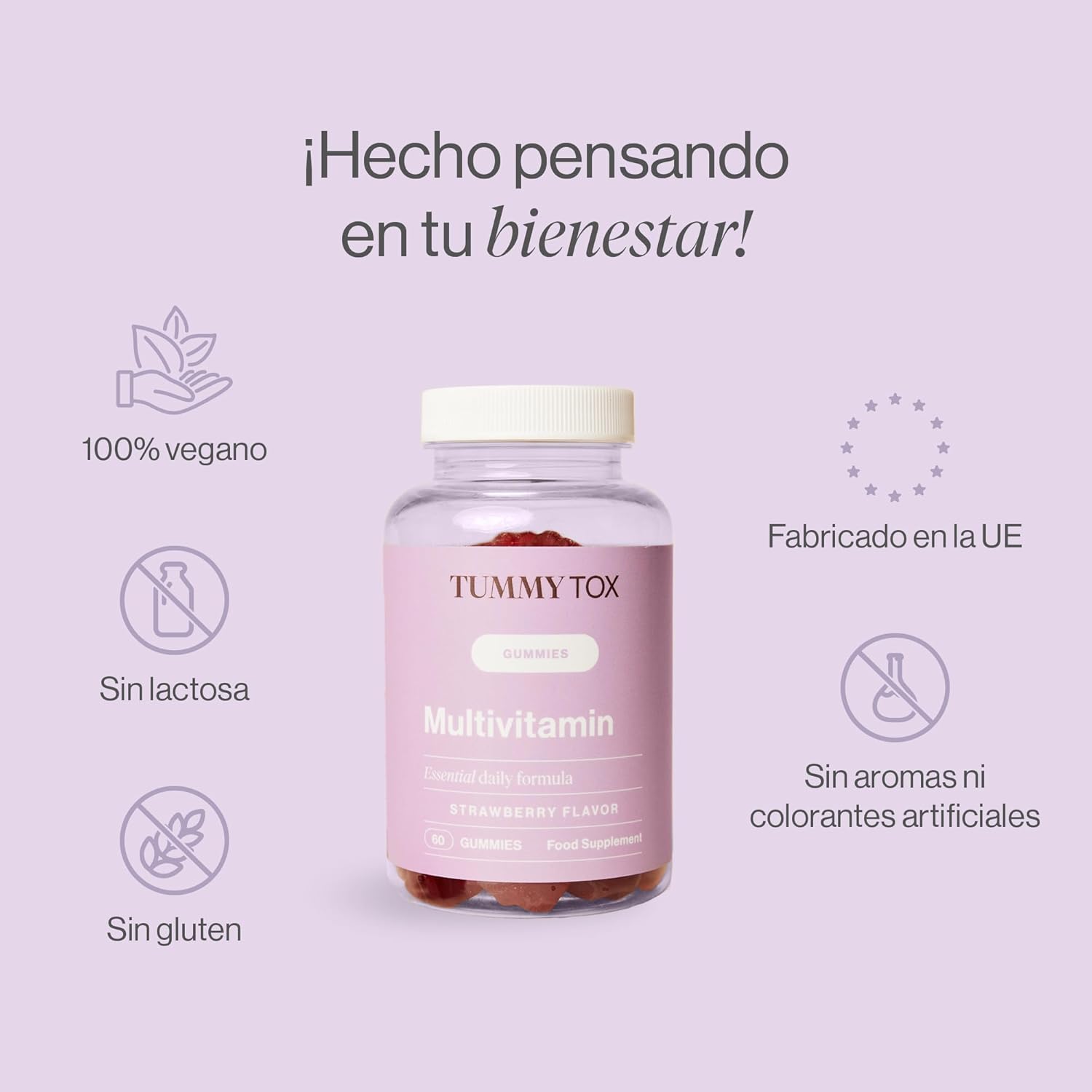 NATURAL STRAWBERRY FLAVOR – TummyTox multivitamin gummy bears with natural strawberry flavor, delicious and healthy.