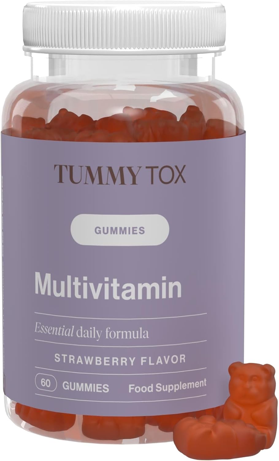 DELICIOUS Gummy Bears – Vitamin complex formulated with essential vitamins for hair and skin, such as biotin. 1 TummyTox multivitamin bear a day is enough and they only have 8.6 calories per gummie!