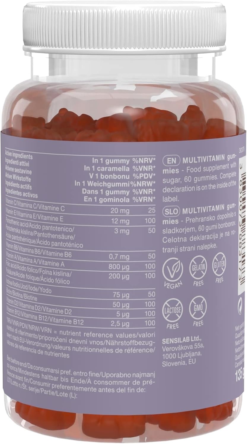 100% Vegan – Vegan, cruelty-free and produced in Europe according to the highest quality standards (GMP). Gluten-free, lactose-free, gelatin-free, and non-GMO! Contains 60 gummies, enough for 2 months.