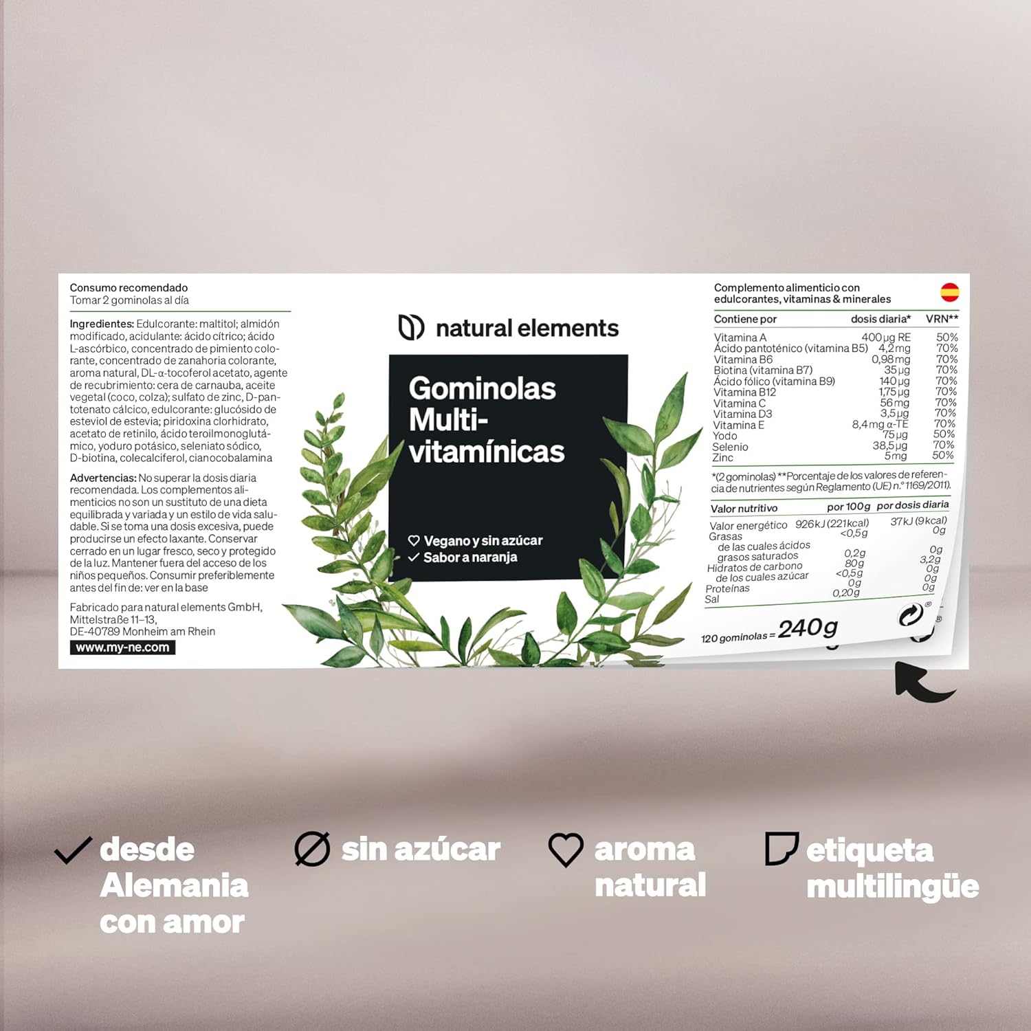 VEGAN AND SUGAR FREE | Our Multivitamin Gummies are gelatin and sugar free. They only contain sweeteners that do not harm teeth and natural aromas to give them a fruity and refreshing taste.