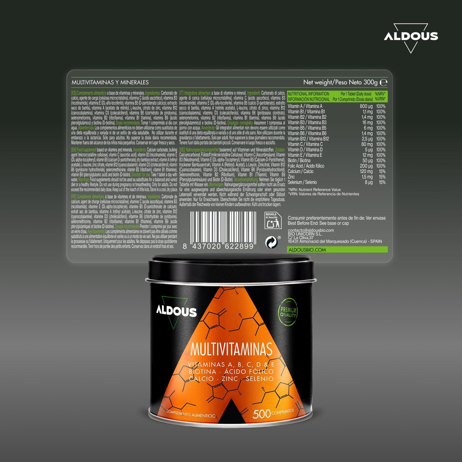 🌱 SIN ESTEARATO DE MAGNESIO, SIN DIÓXIDO DE SILICIO, SIN EDULCORANTES NI AROMATIZANTES Y LIBRE DE GMO – El Multivitaminico Aldous está producido sin edulcorantes ni aromatizantes, sin Estearato de Magnesio ni Dióxido de Silicio para conseguir un producto de calidad para la salud, el cuidado personal y libre de OMG. Suplemento sin Gluten ni Lactosa.