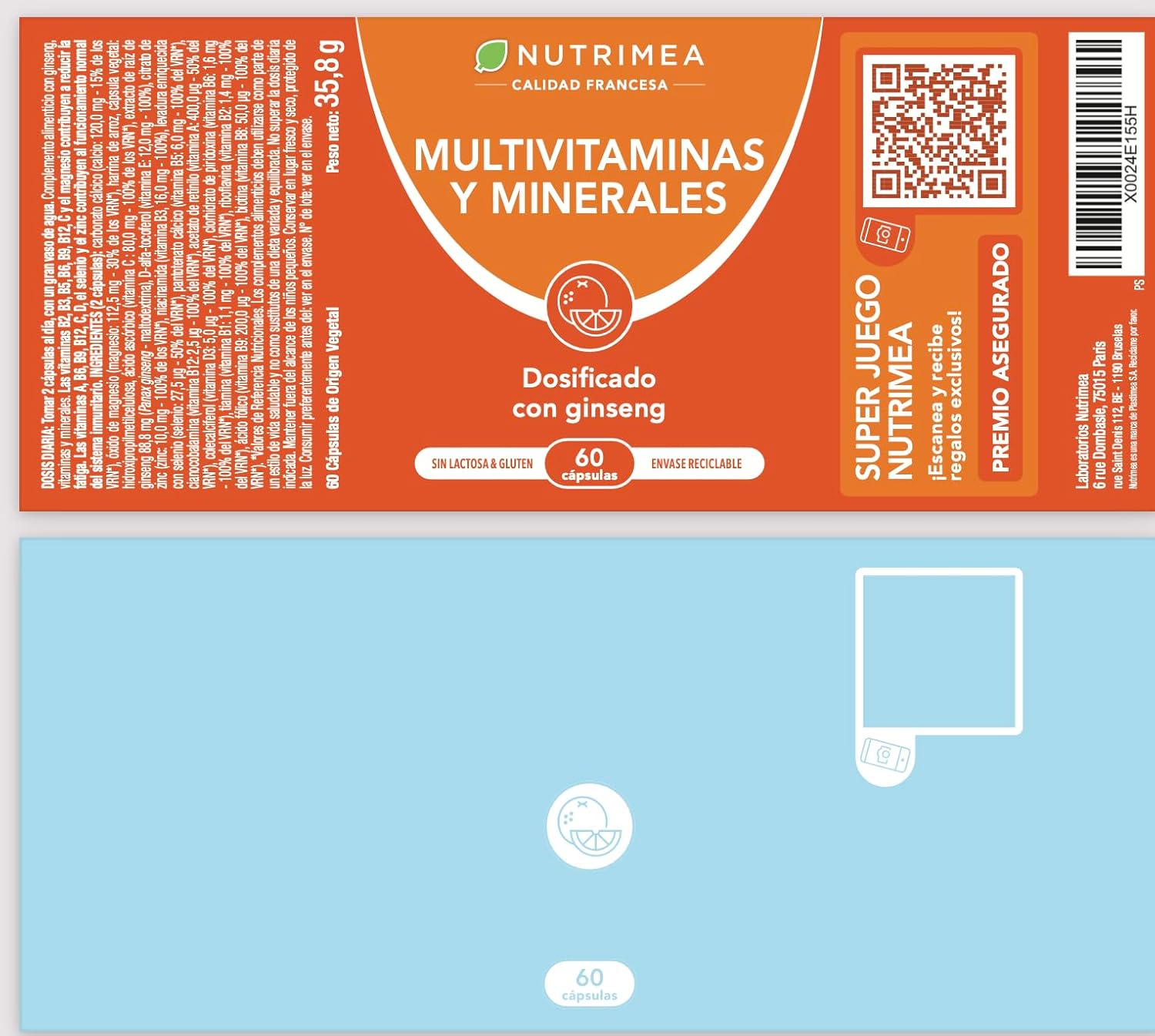 MULTIVITAMINS AND MINERALS MEN AND WOMEN: Nutrimea Multivitamins guarantee a balanced supply of nutrients. As vitamins are water-soluble, we have chosen to concentrate them at 100% of NRVs, optimizing their assimilation. In addition, each trace element has been added to 80% of NRVs, since they can be stored by the body, and the rest is provided by the diet.