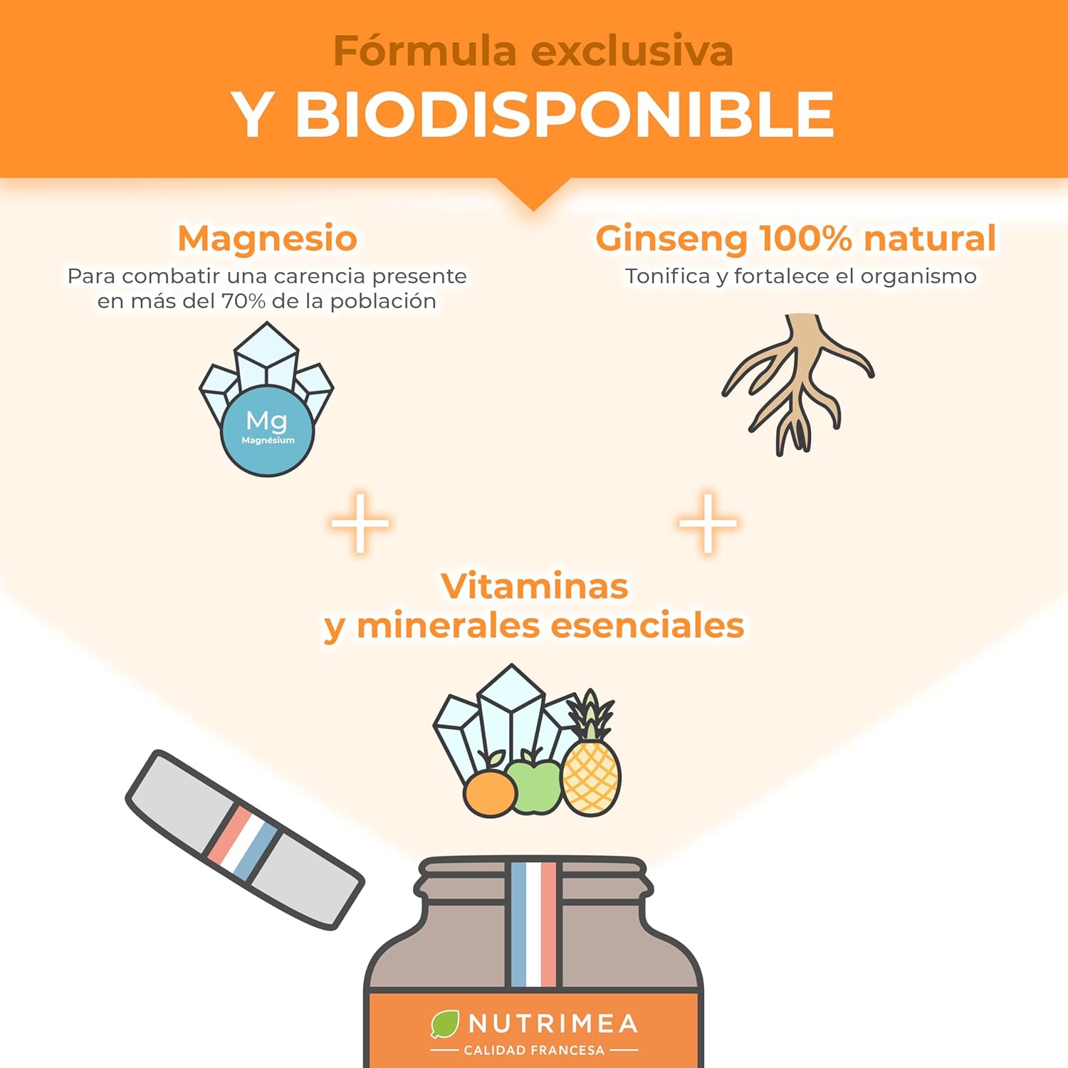 OUR ONLY FORMULA WITH GINSENG: Nutrimea Multivitamin and Minerals is the only one that incorporates very high concentrations of ginseng into its formula. Ginseng root has been used for thousands of years for its tonic effect and to combat physical and intellectual fatigue.