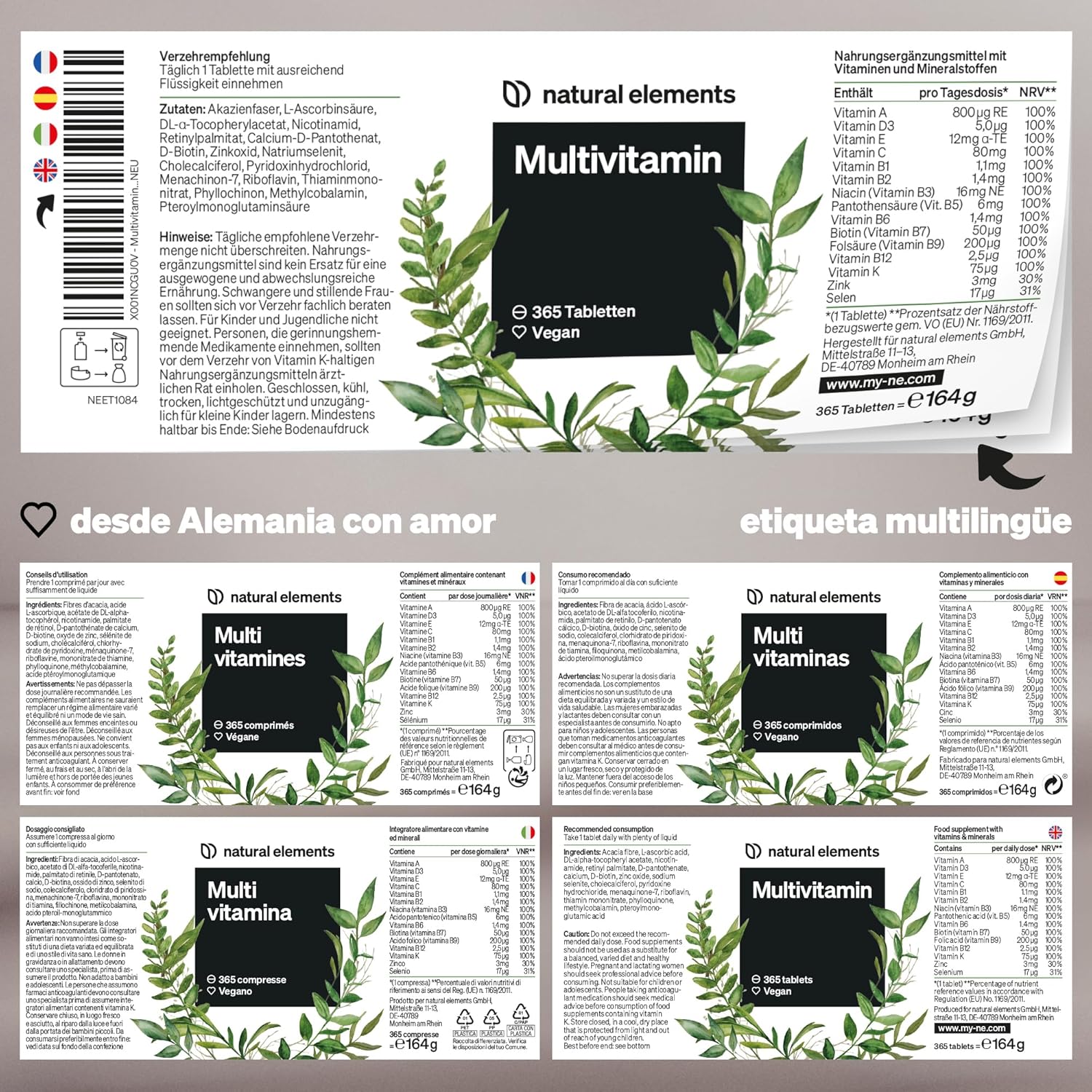 FOR ALL YEAR | 365 tablets and only 1 tablet a day! With the perfect mineral and vitamin base you cover your needs from head to toe. Instead of MCC (microcrystalline cellulose), we use a natural alternative – acacia fiber.