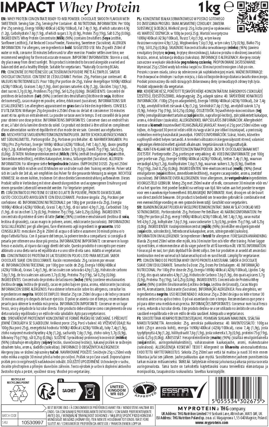 Item model number : MyProtein Impact Whey Prot Cho Smth 1kg