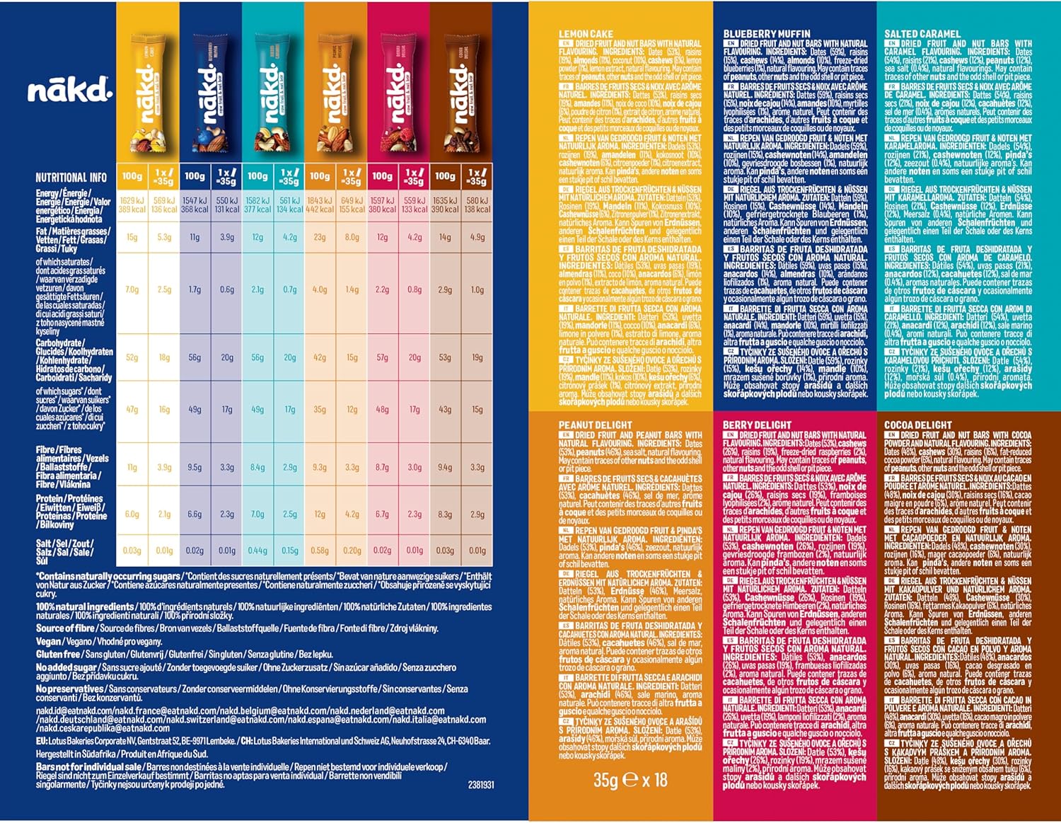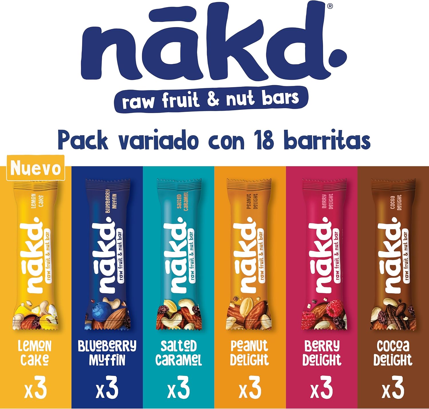 Nākd. New Mix Multi-Flavor Pack | Raw Fruit and Nut Bars | 100% Natural Ingredients | No Added Sugar | 18 x 35g | 630g
