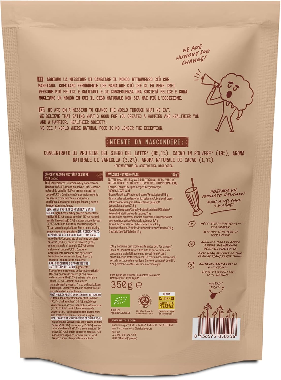 ORGANIC WHEY PROTEIN: The whey concentrate of our protein has the organic certificate, which guarantees its origin from cows fed with 100% natural products. Natural food is no longer an exception