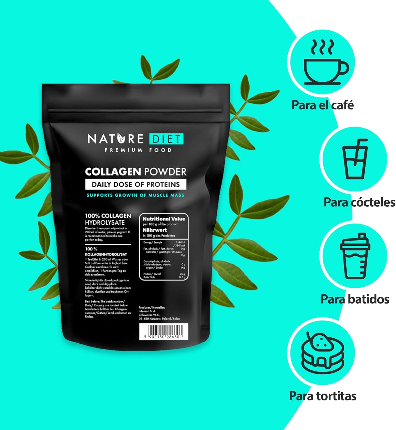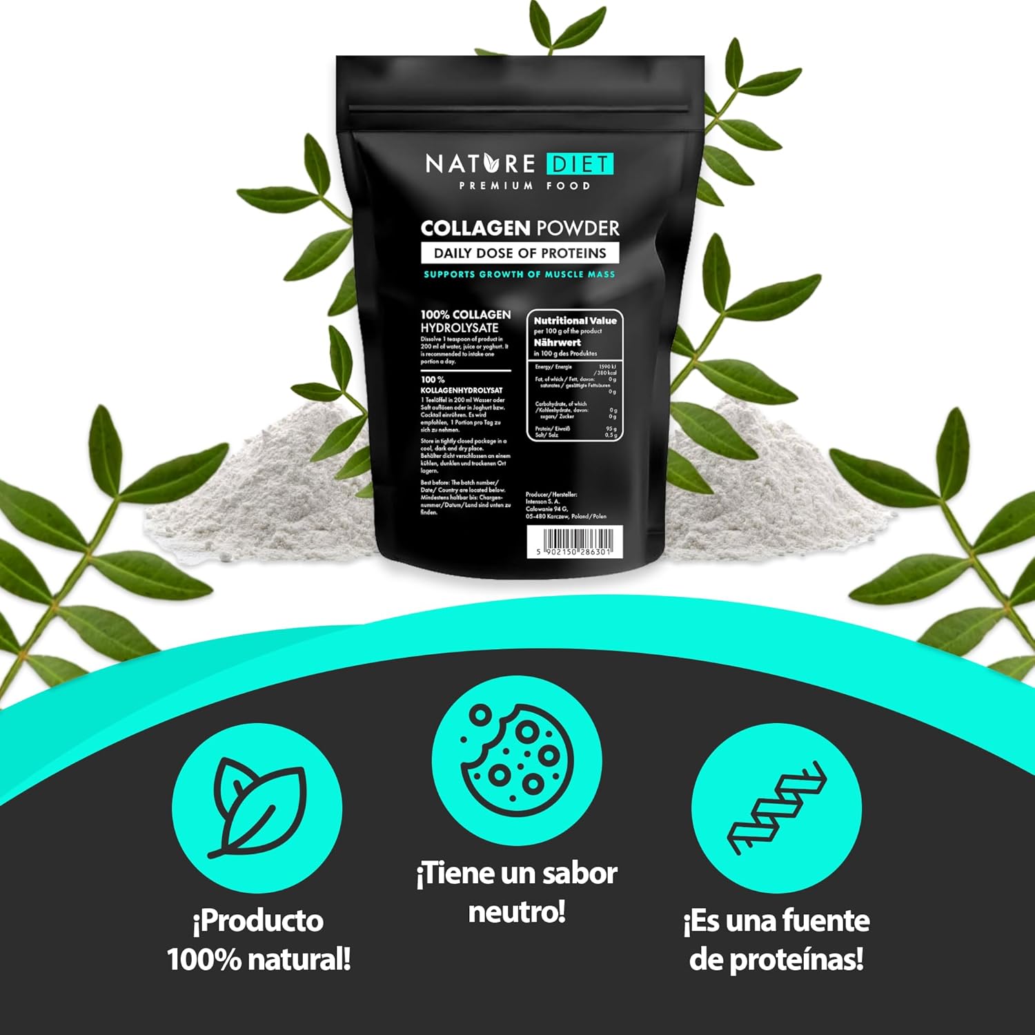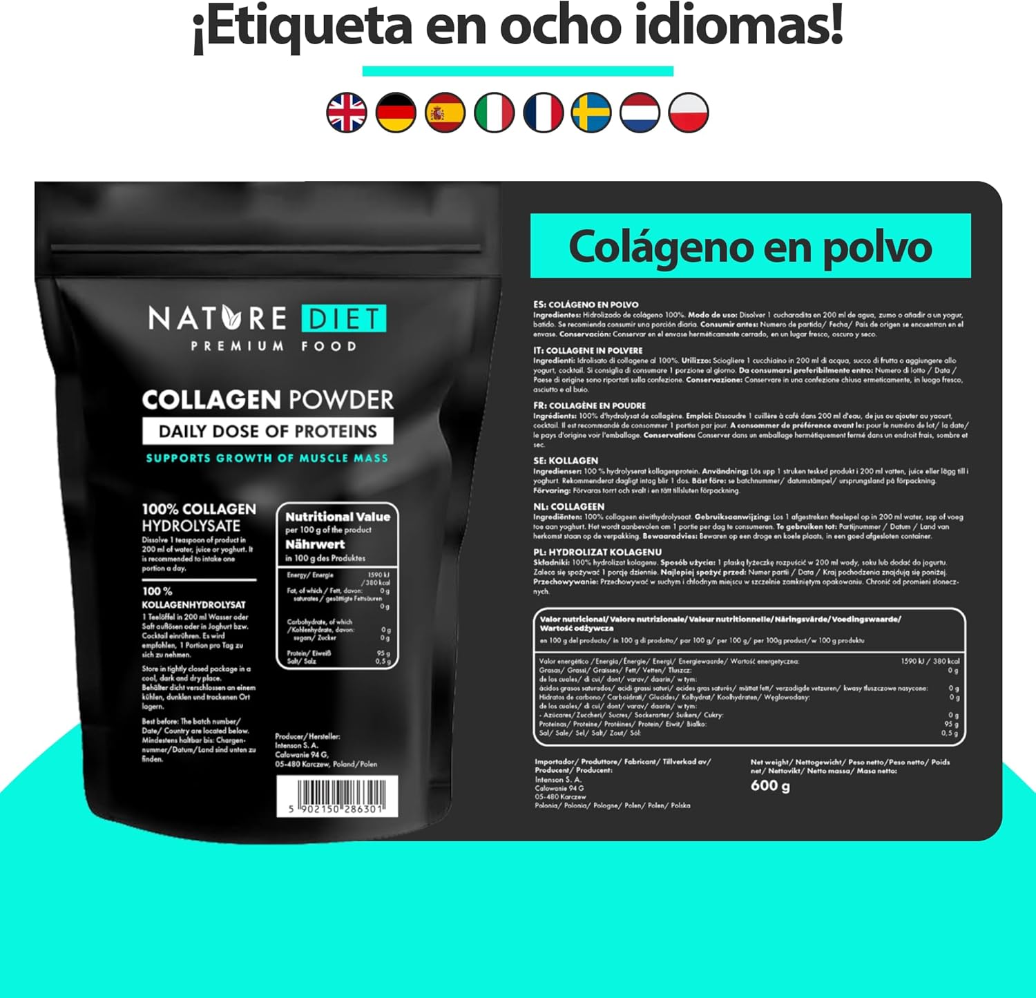 Nature Diet – Colágeno en polvo (Tipo I, III) | 600 g | Hidrolizado | Sin sabor | Péptidos de colágeno | Fuente de Proteína